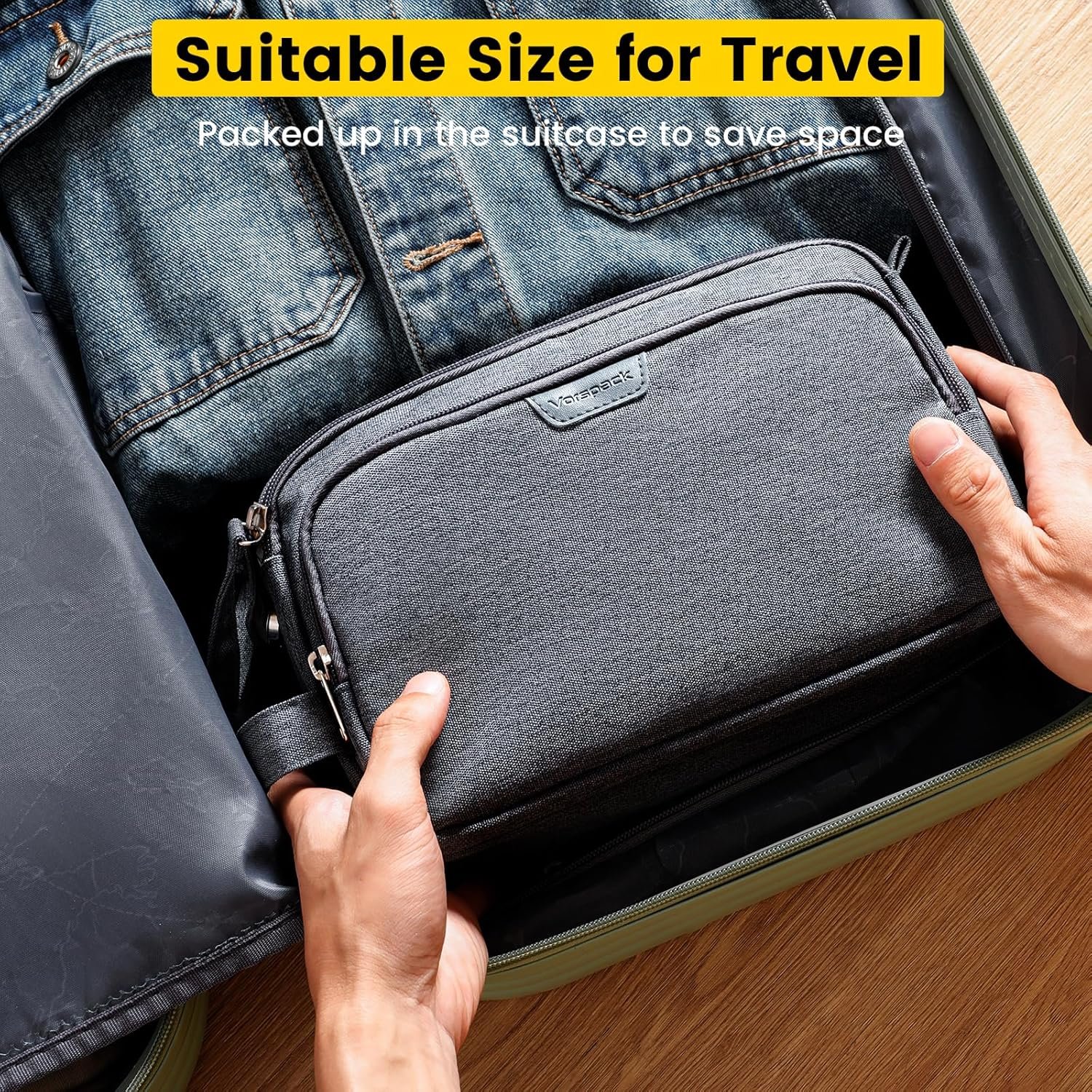 Vorspack Travel Toiletry Bag for Men – Water Resistant Mens Toiletry Travel Bag Dopp Kit Shaving Bag for Bathroom Toiletries Gifts – Grey