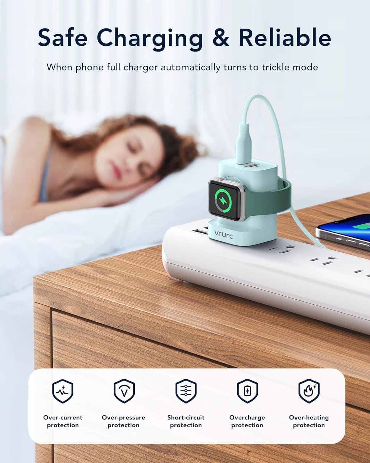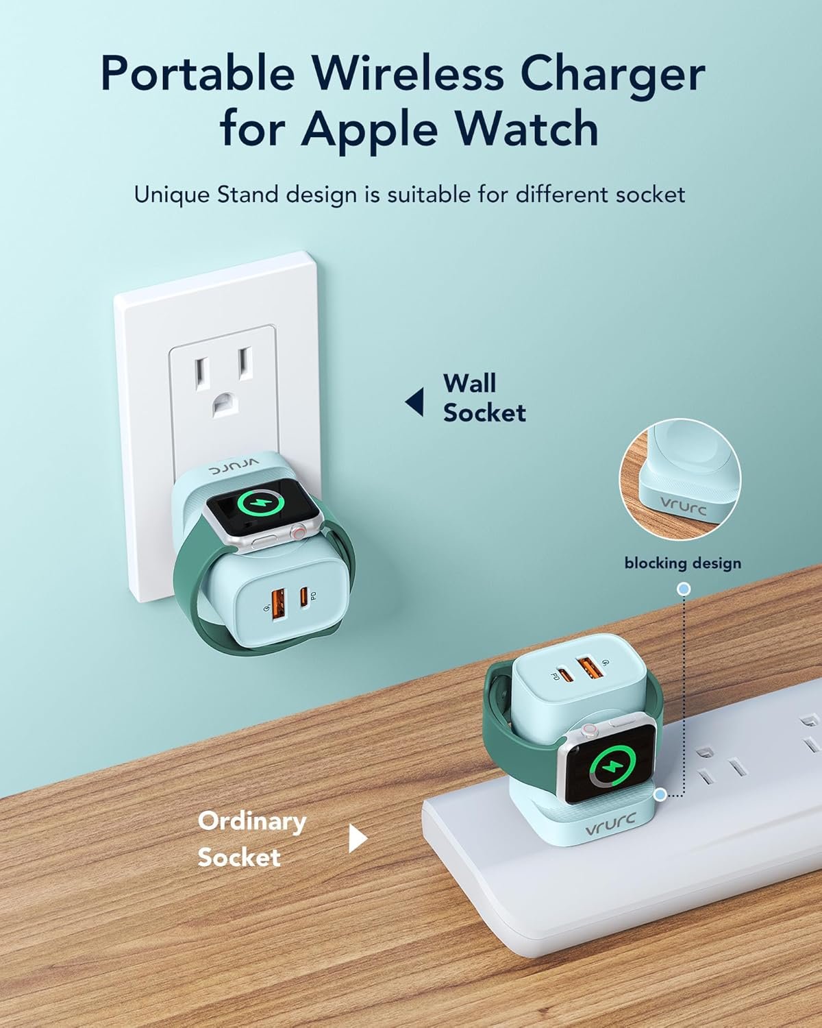 VRURC for Apple Watch Charger, Wireless Magnetic Portable iWatch Charger, PD 20W 3-in-1 Travel Essentials Fast Charging Block for iWatch Ultra/SE/10/9/8/7/6/5/4/3/2, iPhone 16/15/14/13,Android-Green