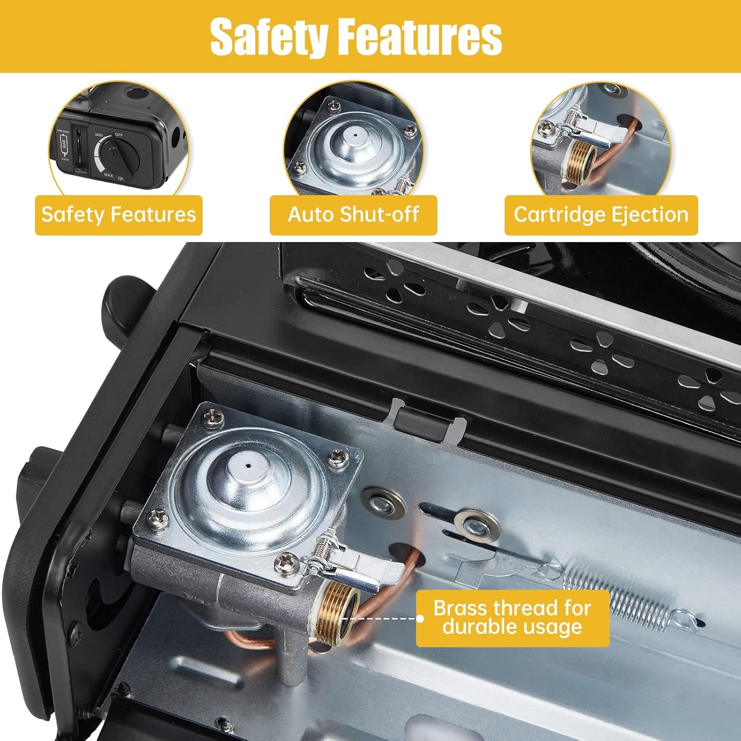 Safety Protection: Our camping gas stove is equipped with a low-pressure valve and safety lock for added safety. We also provide a convenient carrying case, making it easy to transport and perfect for travel and camping adventures.