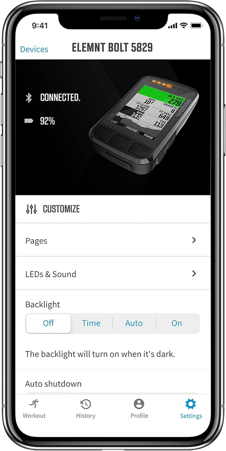 ELEMNT BOLT is purposefully built to provide a simple, intuitive ride experience in a sleek, aerodynamic design. This GPS bike computer features a 2.2 inch, 64 color screen with an ambient light sensor to make it easy to see the metrics that matter most, at a glance. Perfect View Zoom, Quicklook LEDs, and customizable data pages allow you to personalize your device setup to ensure it’s a helpful companion from the beginning to the end of your ride. With 16GB of memory and on-device navigation features, ELEMNT BOLT can store the maps and routes you need to keep you on track and re-route on the fly. BOLT has a battery life of 15 hours and can be charged mid-ride thanks to its USB-C charging. Equipped with Bluetooth Smart, ANT+, and WiFi technology, ELEMNT BOLT pairs seamlessly with all of your cycling sensors and complementary devices to get the most out of your time training. Designed for performance and engineered for simplicity – the ELEMNT BOLT GPS Bike Computer makes every second count.