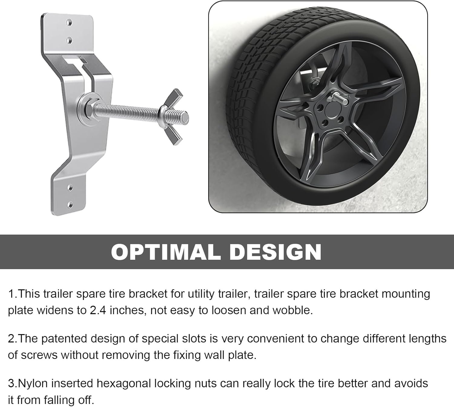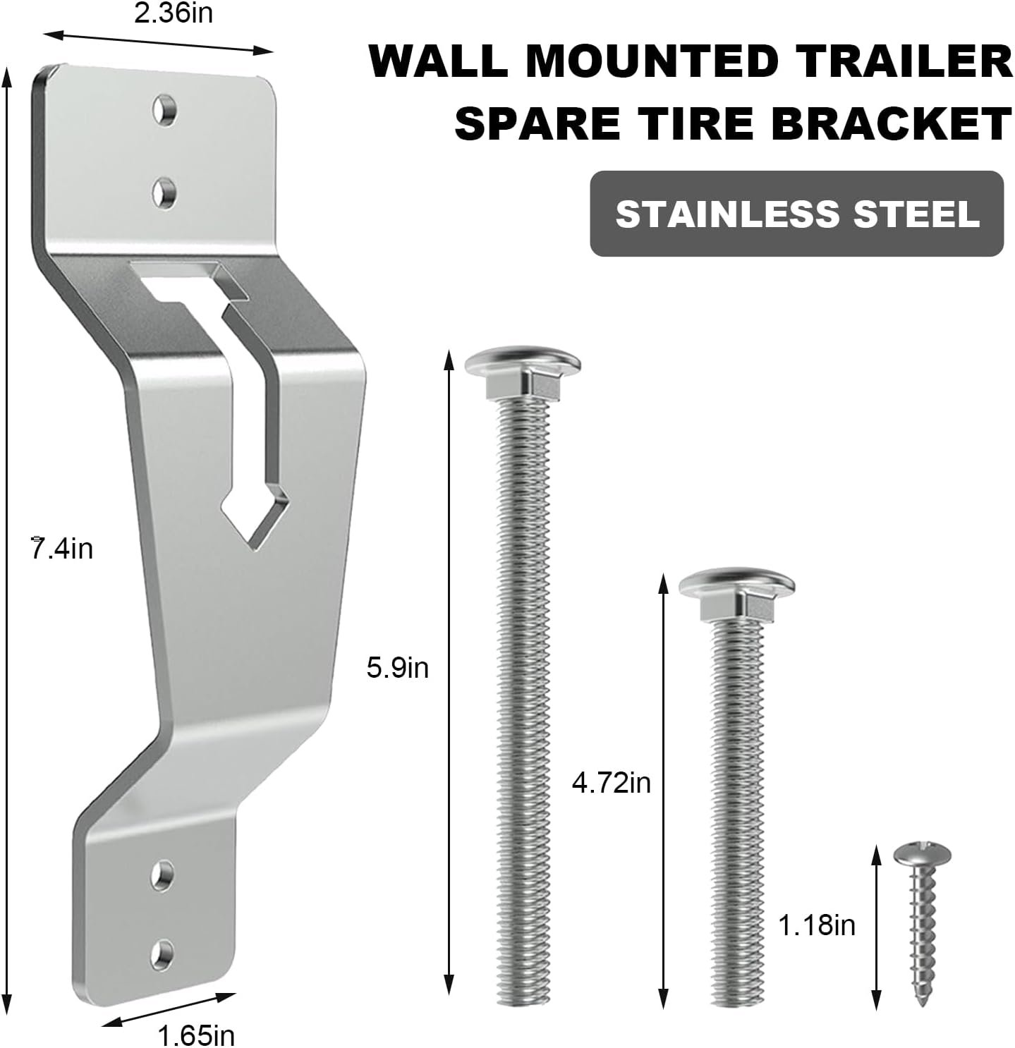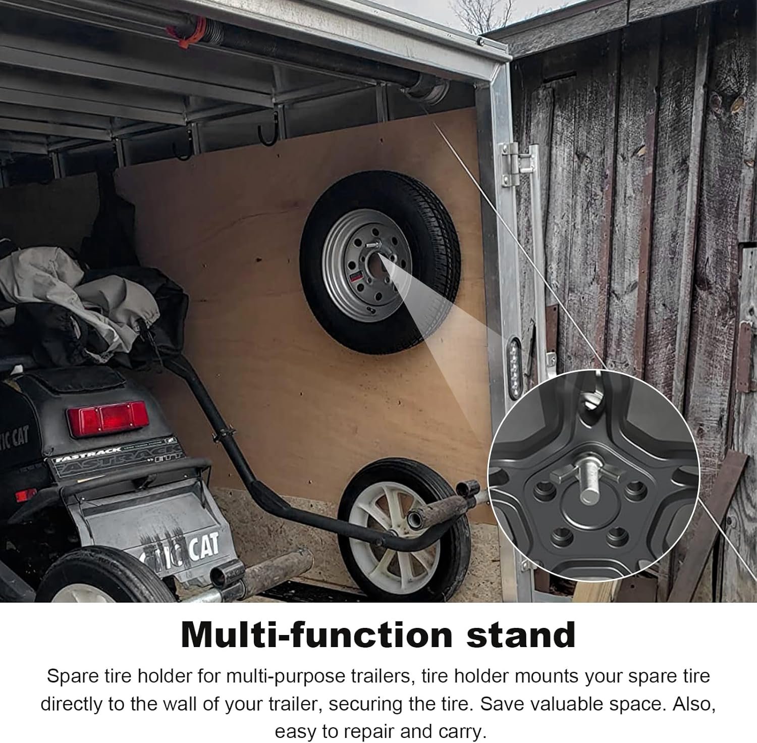 【Convenient Access】: The multi-purpose trailer spare tire mount is designed for convenient carrying and storing of spare tires. It enables the spare tire to be placed effortlessly on the wall of the trailer or garage, allowing for easy access to spare tires when the vehicle requires maintenance.