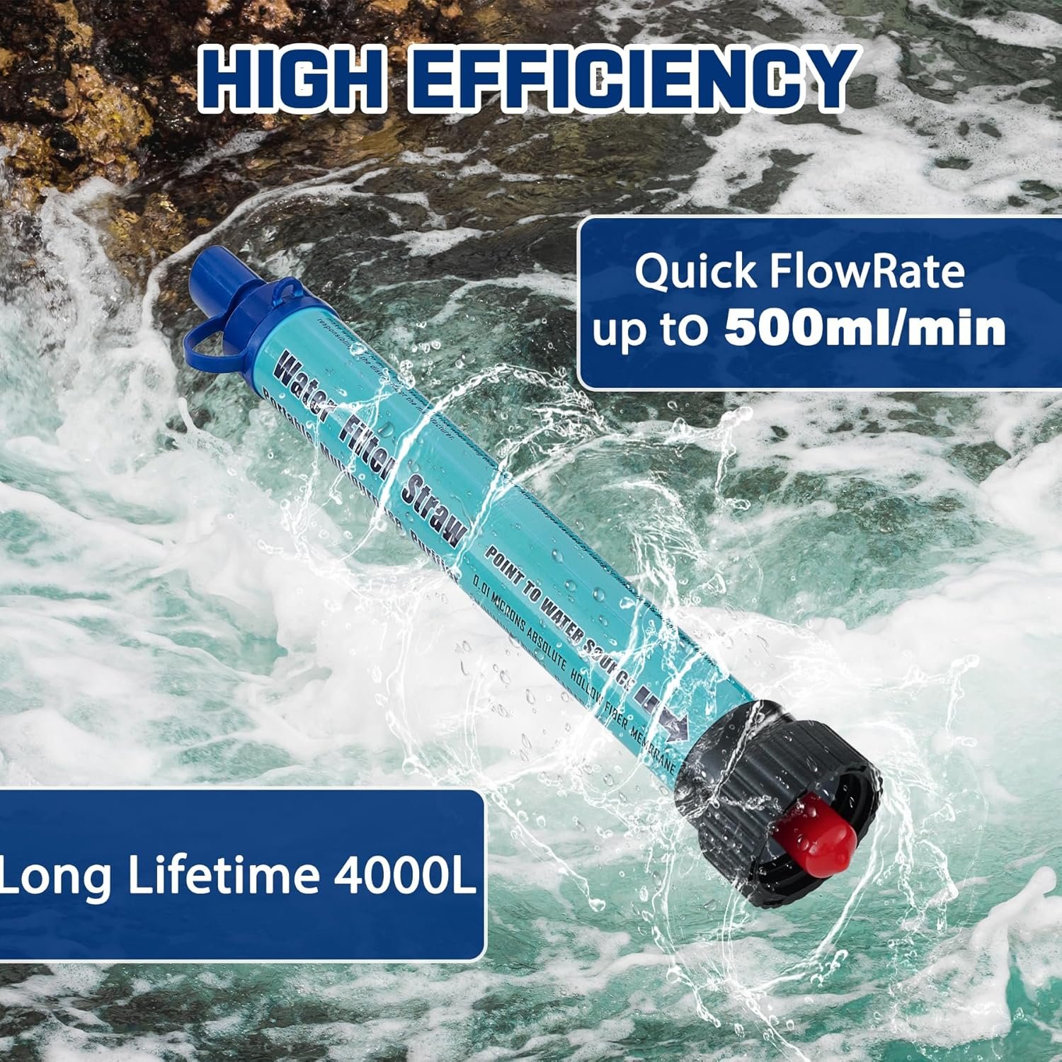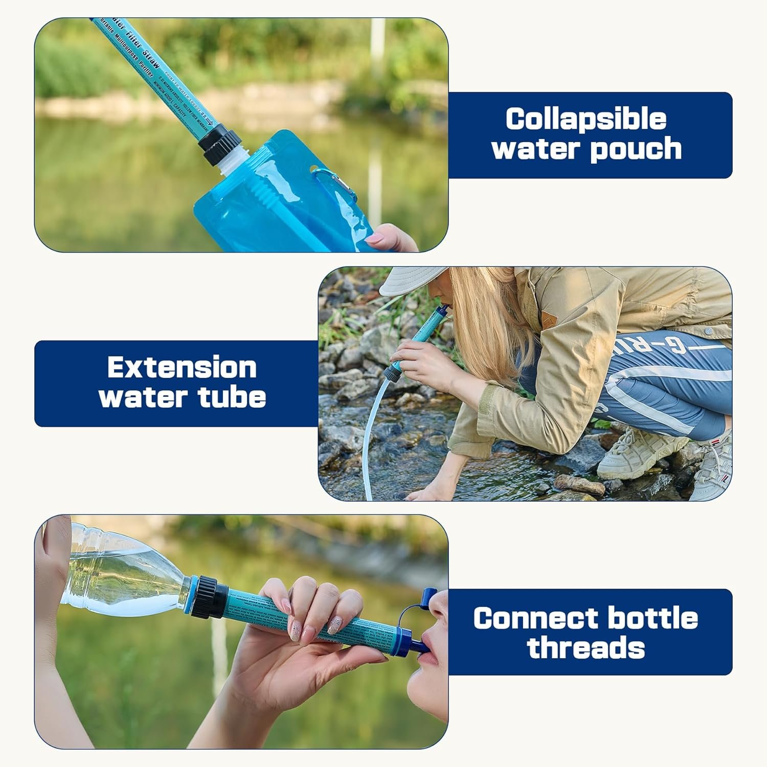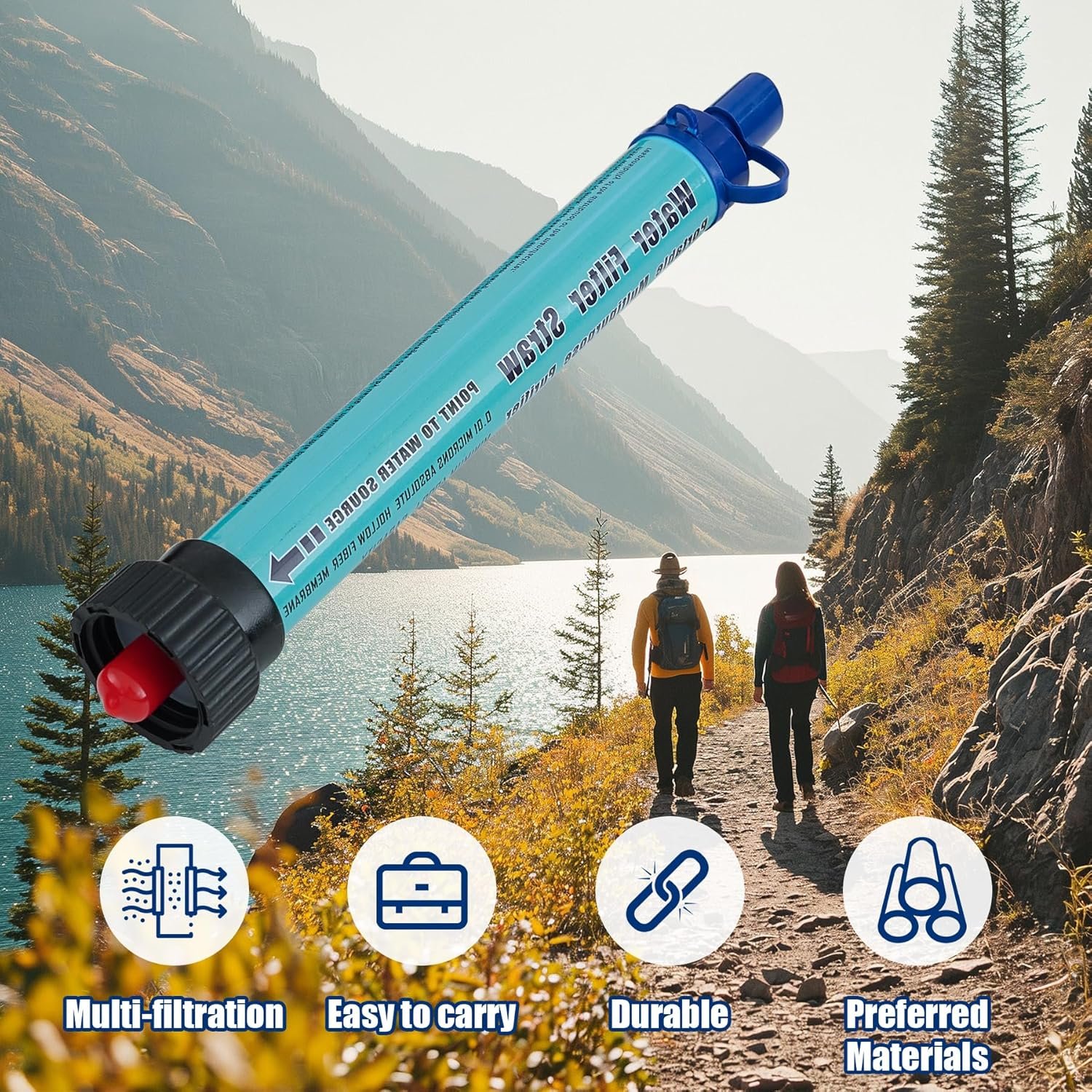 Water Filter Straw Kit Outdoor Portable Personal Water Filter Straw Water Purifier Survival Gear and Equipment for Hiking Camping Travel and Emergency Blue