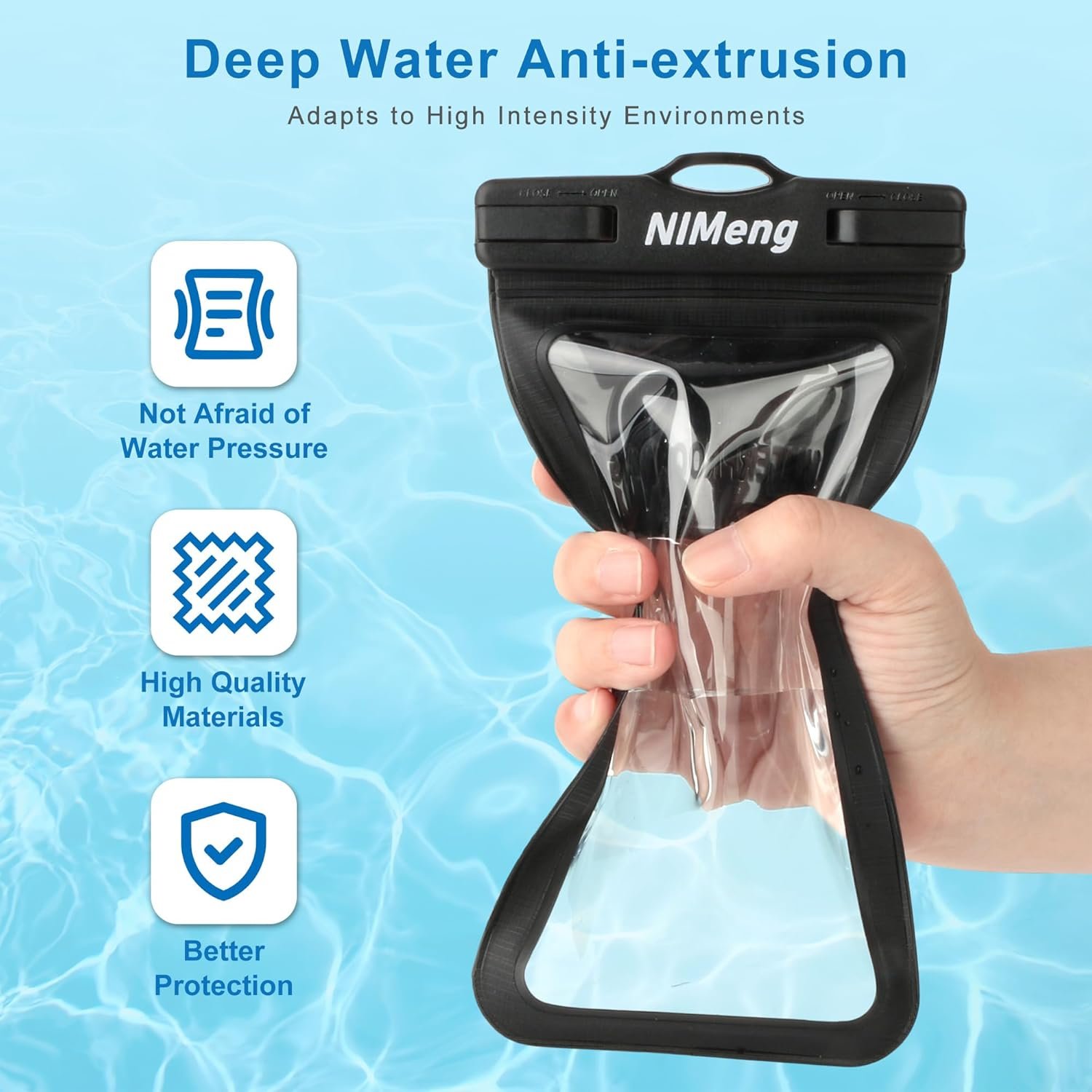 IPX8 Waterproof Pouch case:With Newest upgraded locking clips, high-quality materials, and the latest seamless heat-press technology, the waterproof phone pouch offers superior waterproof protection (IPX8 rating). It protects your smartphone from water, sand, dust, and other elements while swimming underwater or playing at the beach. This waterproof pouch is an essential accessory for both indoor and outdoor activities, as well as for travel.