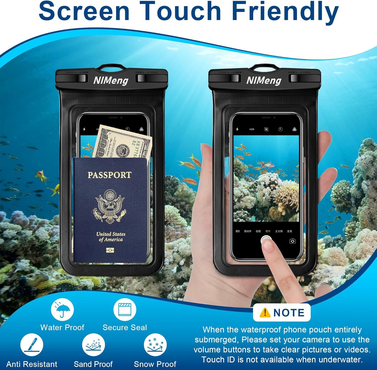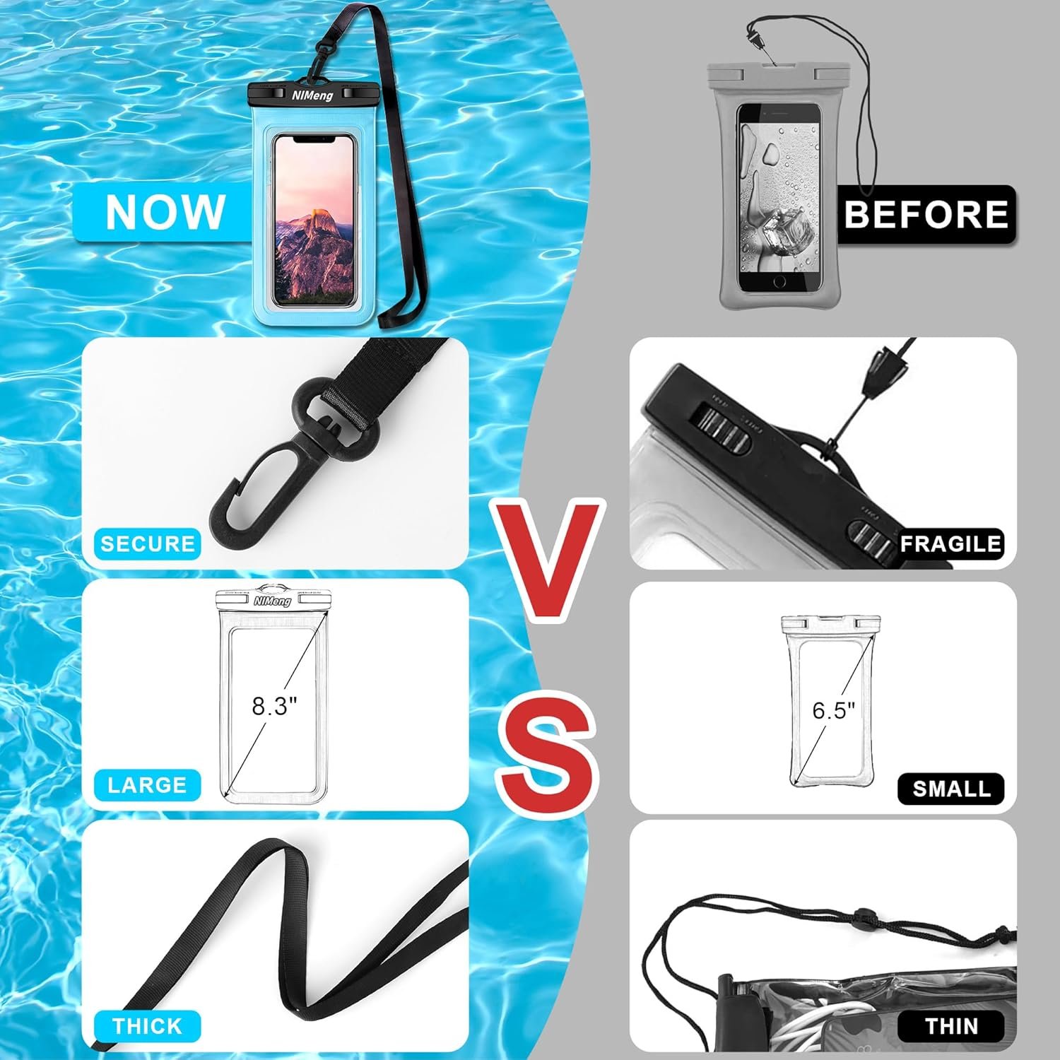 Transparent waterproof phone case: The waterproof bag features a transparent design, allowing clear visibility of your phone screen for easy use of functions like touch screen and taking.