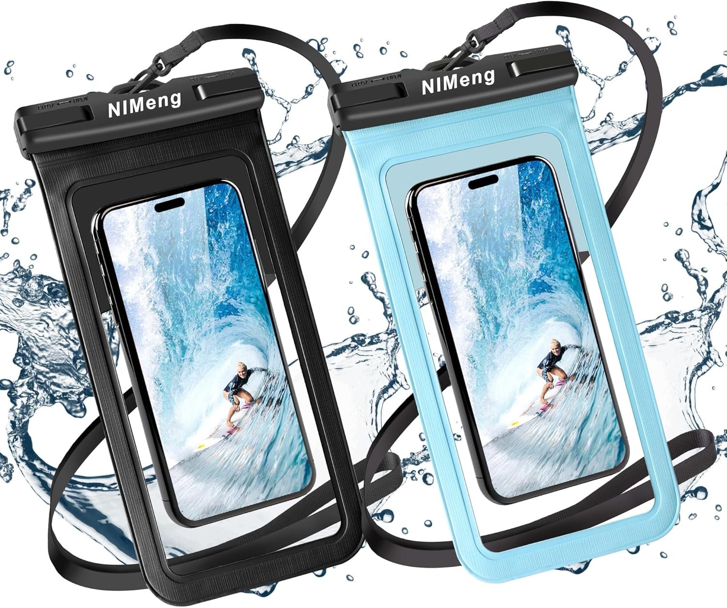 Waterproof Phone Case for iPhone 15 14 13 12 11 Pro Max 7.6 inch Water Proof Phone-Pouch Underwater-case Black and Bule 2 Pack
