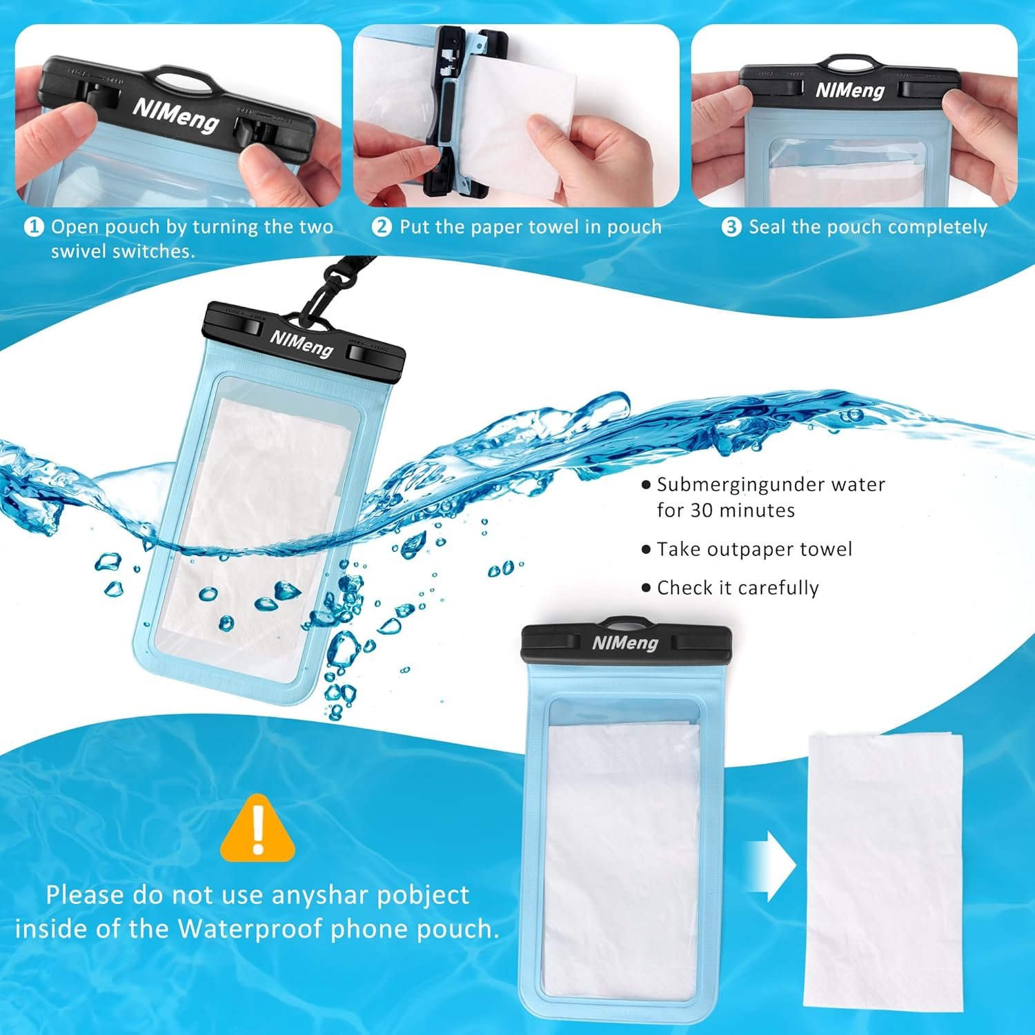 Easy use waterproof phone case: The waterproof pouch is an essential accessory for water sports, ideal for swimming, beach trips, snorkeling, surfing, boating, skiing, fishing, kayaking, and rafting.