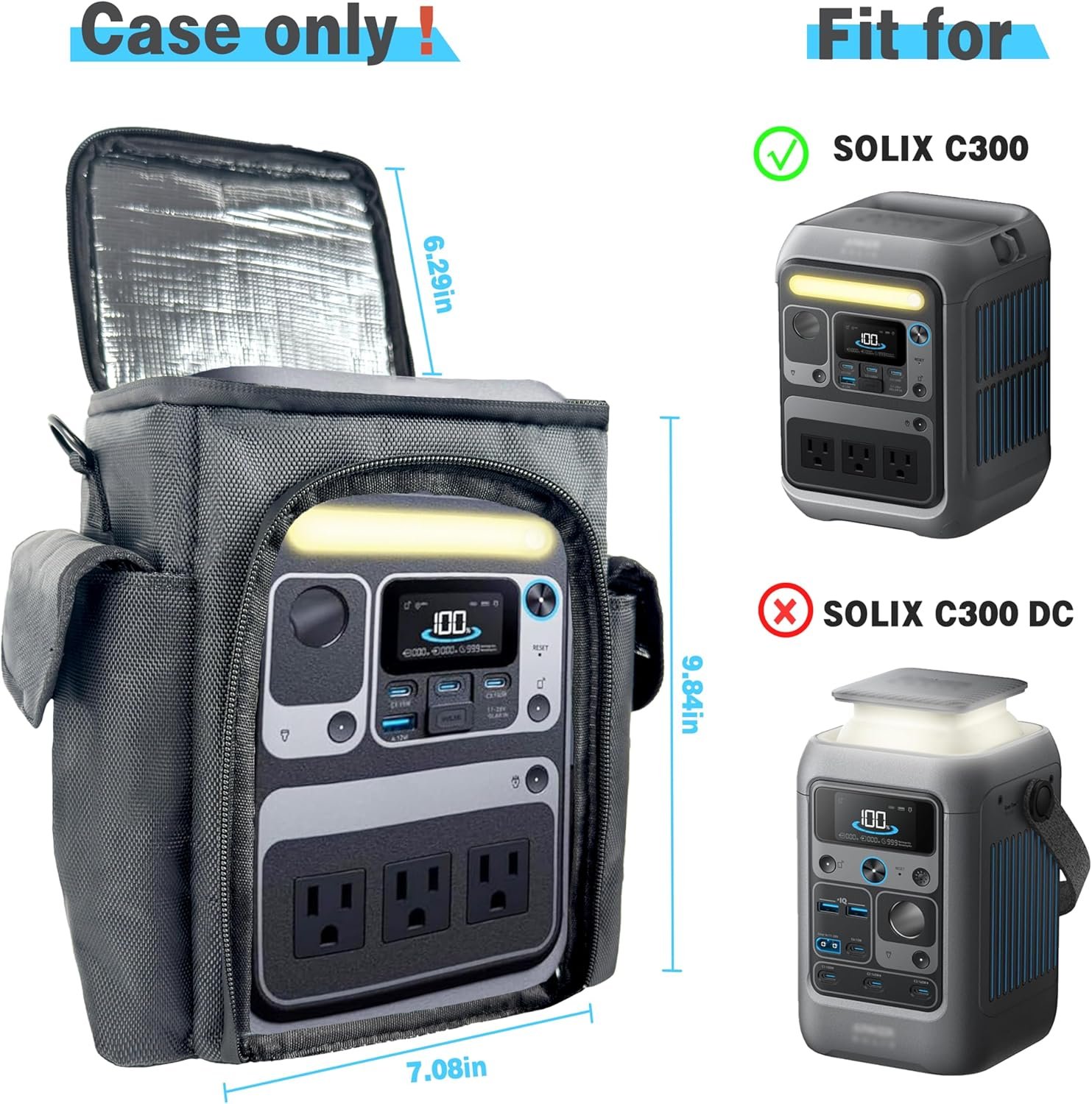 Waterproof Travel Bag Compatible with Anker SOLIX C300 Portable Power Station, Outdoor 288Wh LiFePO4 Battery,Power Bank Station Storage Case Cover with Two Pockets and Adjustable Strap