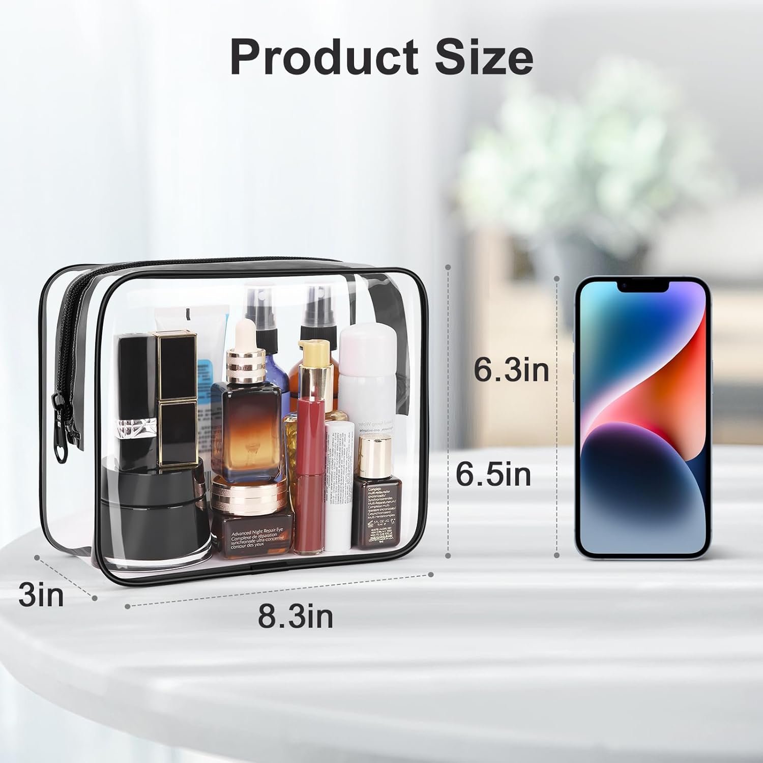Note: The large-size clear toiletry bag is 8.3*6.5*3 inches, it is more than one quart and is not TSA approved. Please kindly mind the size.