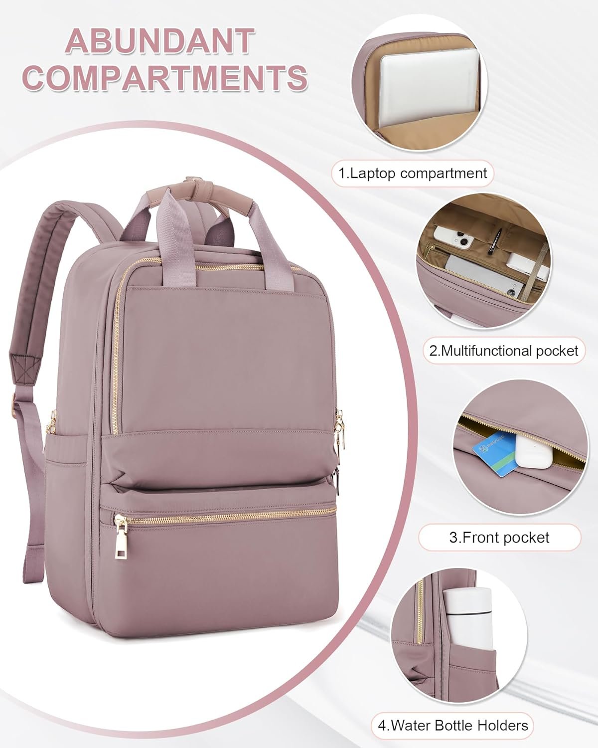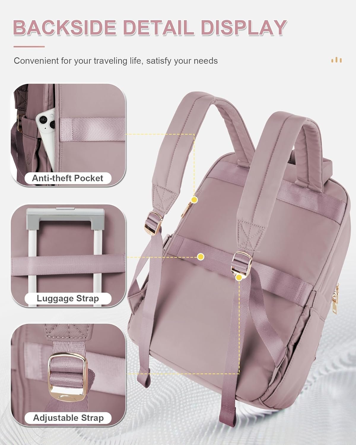 【Practical and Comfortable Design】This laptop bag has a comfortable patchwork carry handle on the top, soft and wearable. The back of the backpack is equipped with a luggage strap, you can put it on the luggage business travelers can put the backpack directly on the luggage, more convenient to carry. There is an anti-theft zipper pocket on the back of the backpack, you can put your cell phone, wallet, documents and other valuables, anti-theft and convenient.