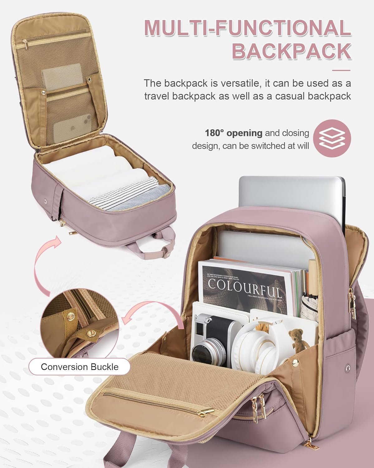 【Airline Certified Travel Backpack】The dimension of this travel bag is 40*31*14cm / 15.7*12.2*5.5” and weighs only 2 lbs. This luggage backpack meets the maximum size requirements for most IATA flights, and its compact design can be placed directly under overhead luggage racks and seats to help you save extra money. Plus, it opens 180° like a suitcase, allowing you to move quickly through airport security.
