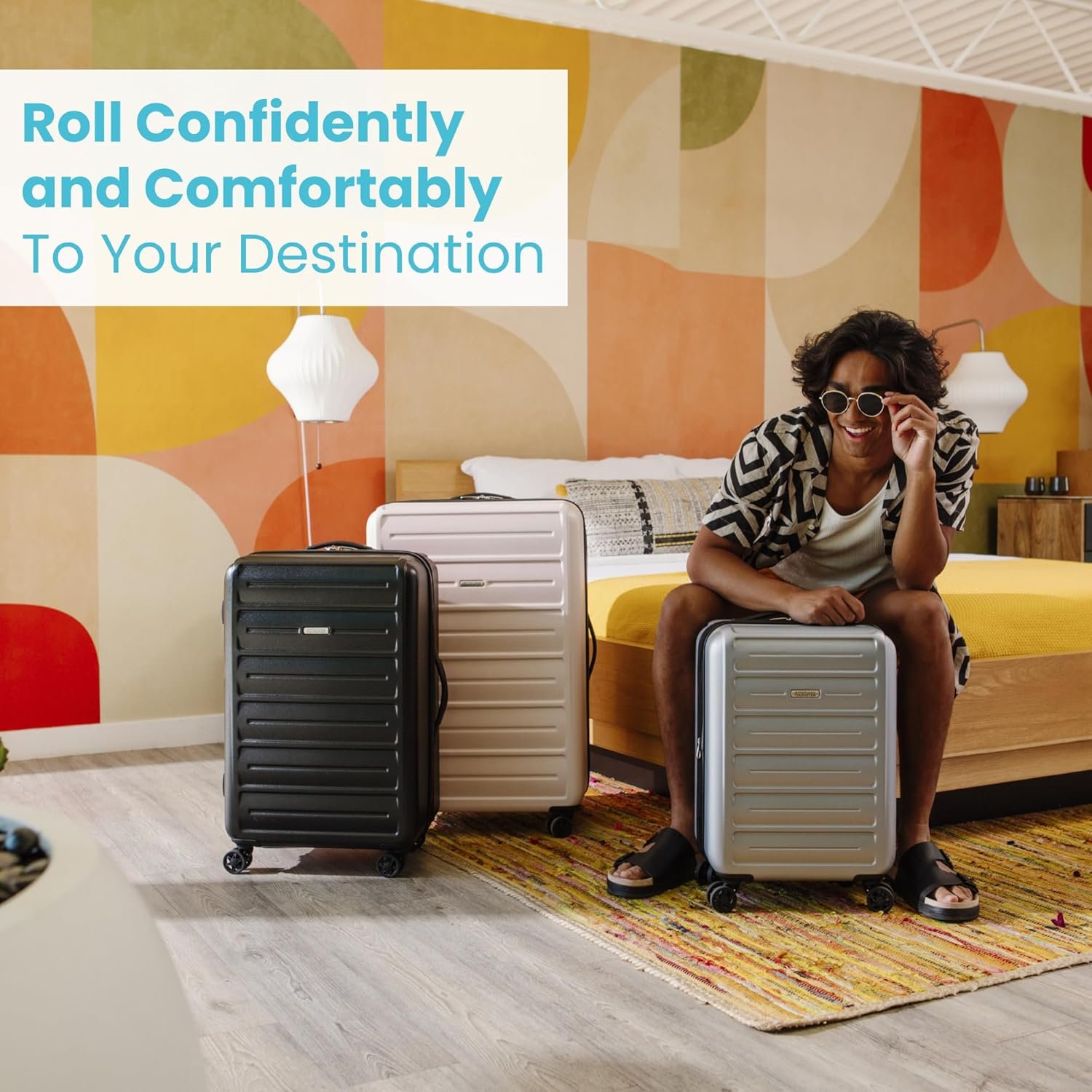 Westridge Hardshell Luggage Set – 3 Piece Set – 20″ Carry-On, 24” & 28” Checked Luggage Set with 360° Spinner Wheels – Expandable Suitcases for Extended Travel – Durable ABS Shell – Black