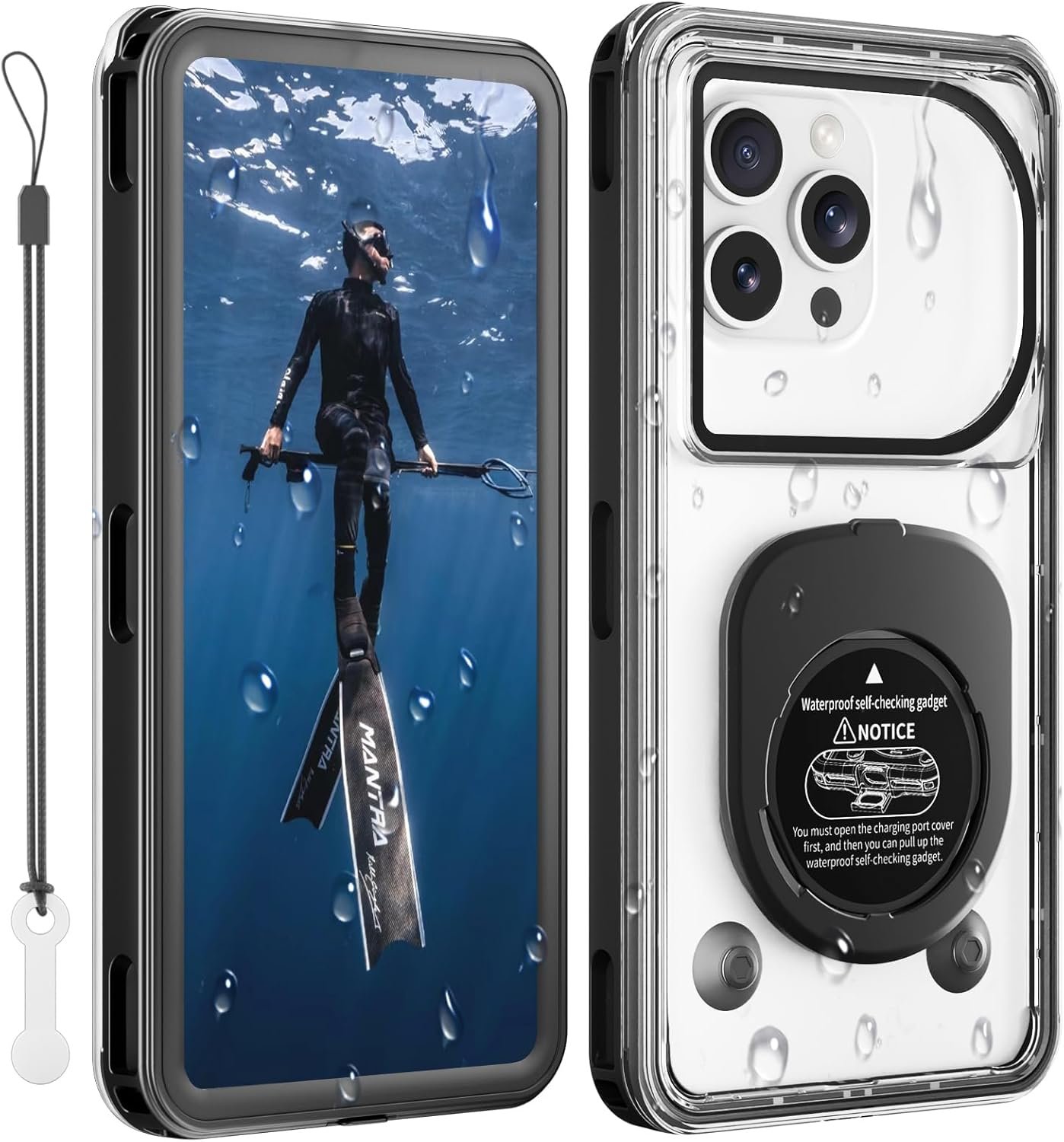 WIFORT Underwater Phone Case for Snorkeling, Pro Diving IP68 Waterproof Case with Lanyard, Universal Under Water Video Cellphone Case for iPhone 16 Galaxy Pixel Moto All Series, Up to 6.9″ – Black