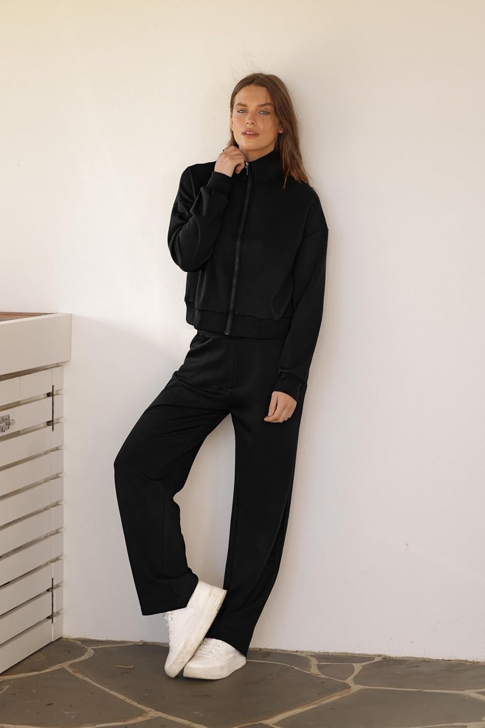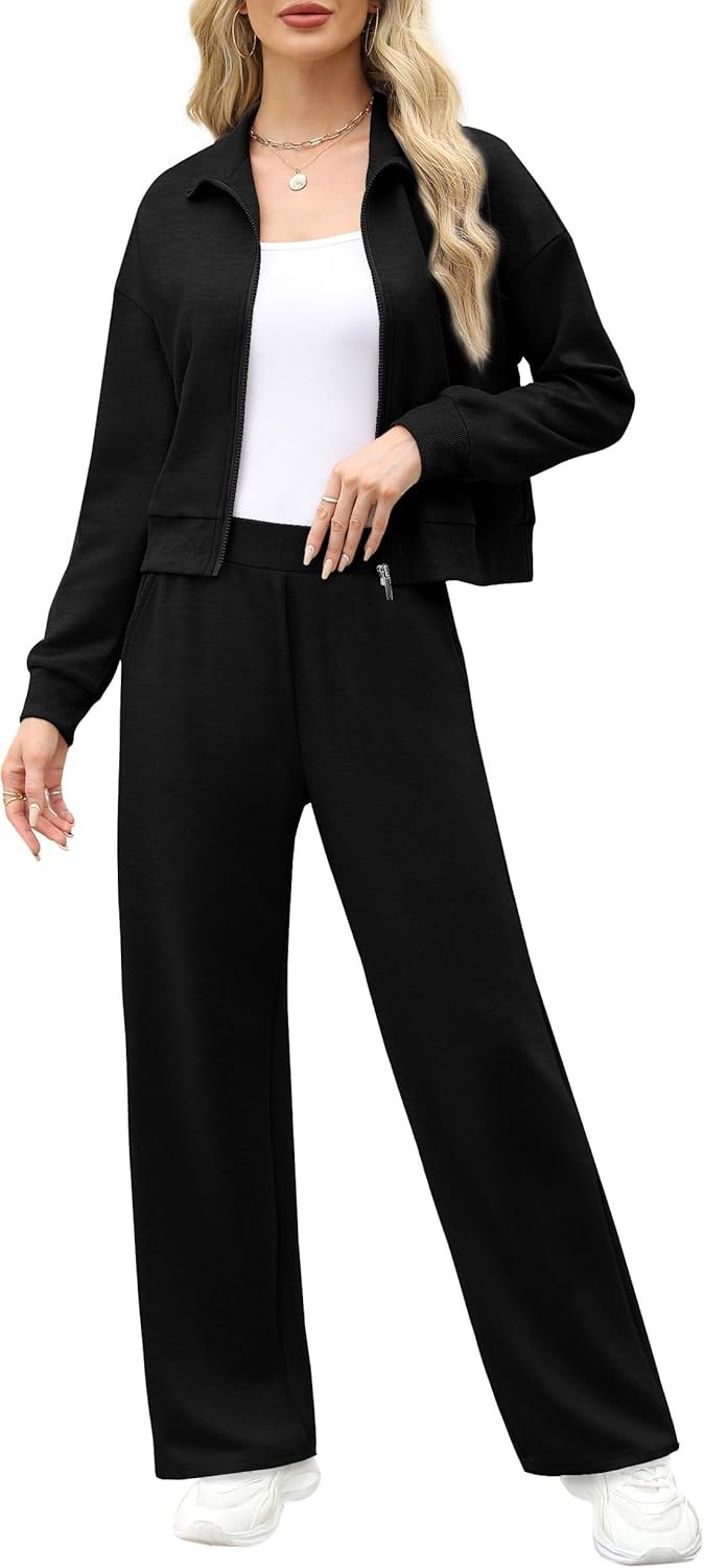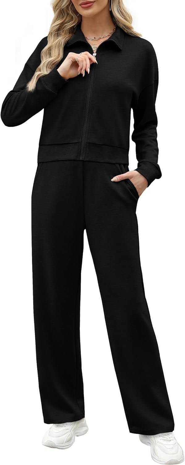WIHOLL Travel Outfits for Women 2 Piece Sets Lounge Sets Sweatpants Sweatshirt Zip Up Sweatsuit Casual Tracksuit
