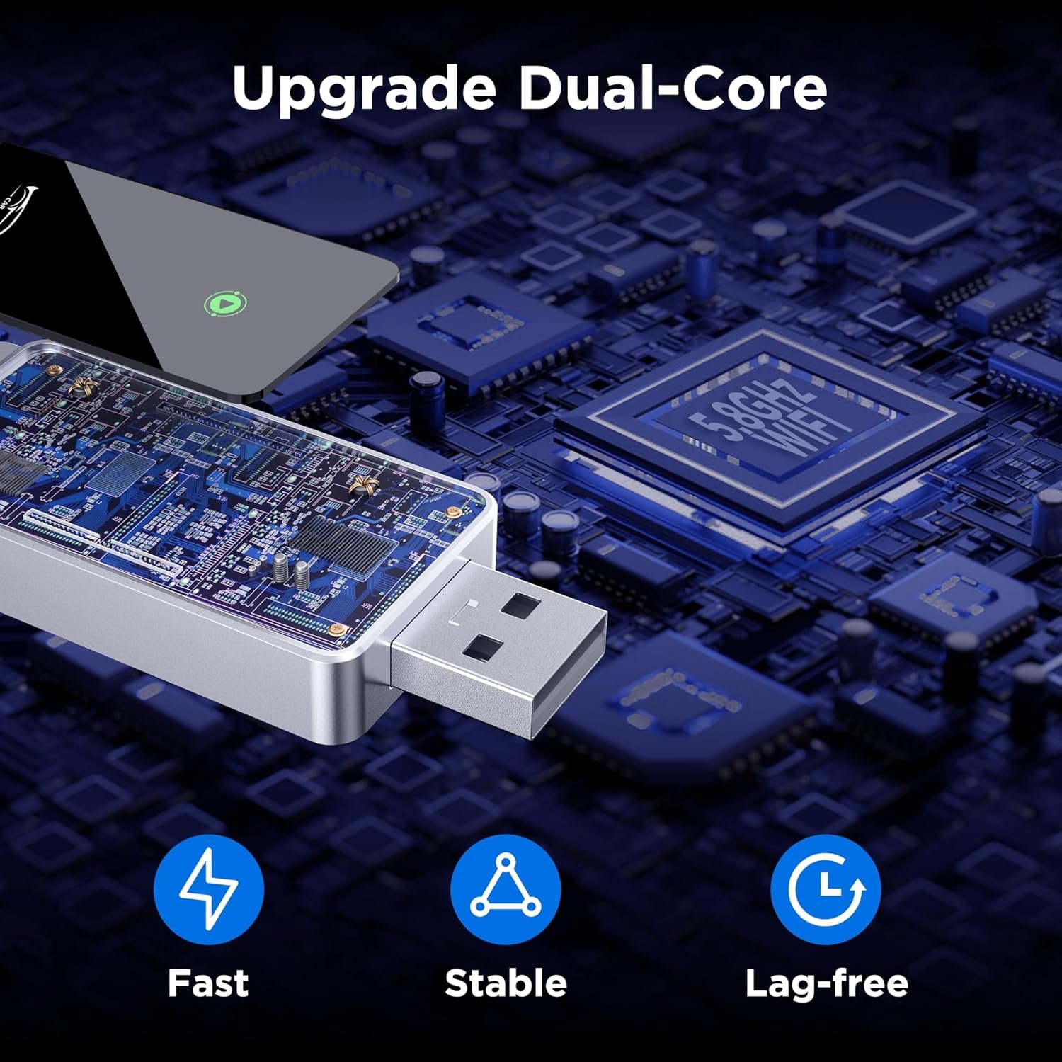 Fast and Stable: The Wireless CarPlay adapter uses an upgraded cooling chip and 5G with 5GHz WiFi for faster, stable data transmission, fewer interruptions, and restored audio quality