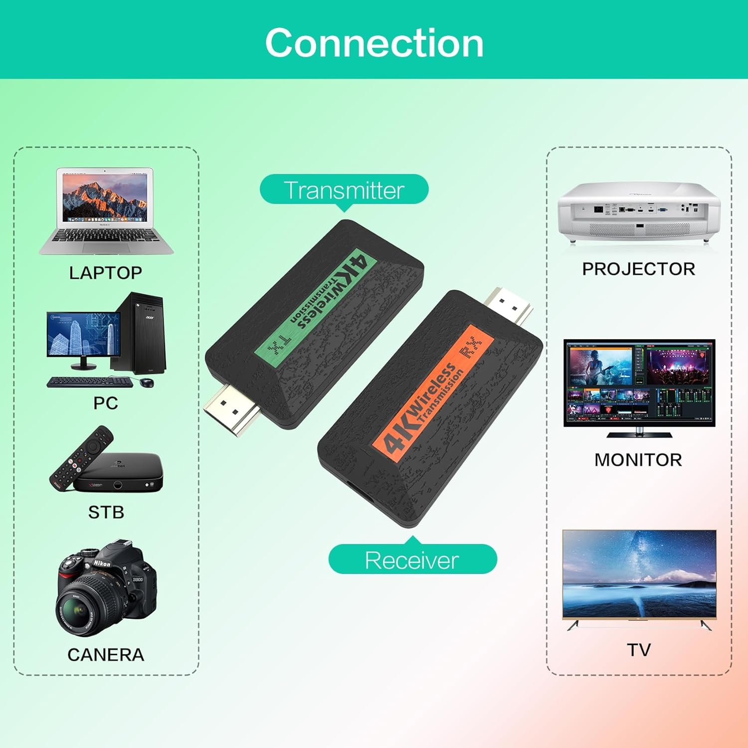 【Wide Compatibility】 Designed for seamless compatibility with laptops, PCs, projectors, DSLR cameras and any HDMI-enabled device, this transmitter and receiver combo ensures hassle-free connectivity and exceptional performance.
