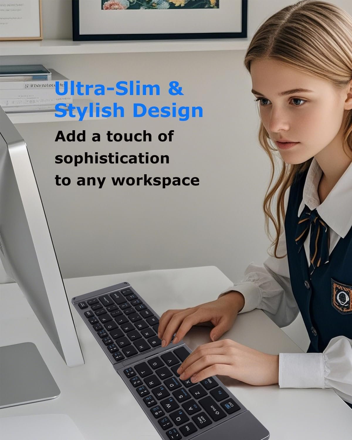 Stylish Design: The stylish design of bluetooth ergonomic keyboard foldable keyboard for iphone/ipad add a touch of sophistication to any workspace. It’s a stylish and practical gift for those who appreciate sleek tech accessories.This stylish appearance, combined with functionality, makes it a perfect accessory for anyone looking to enhance their setup