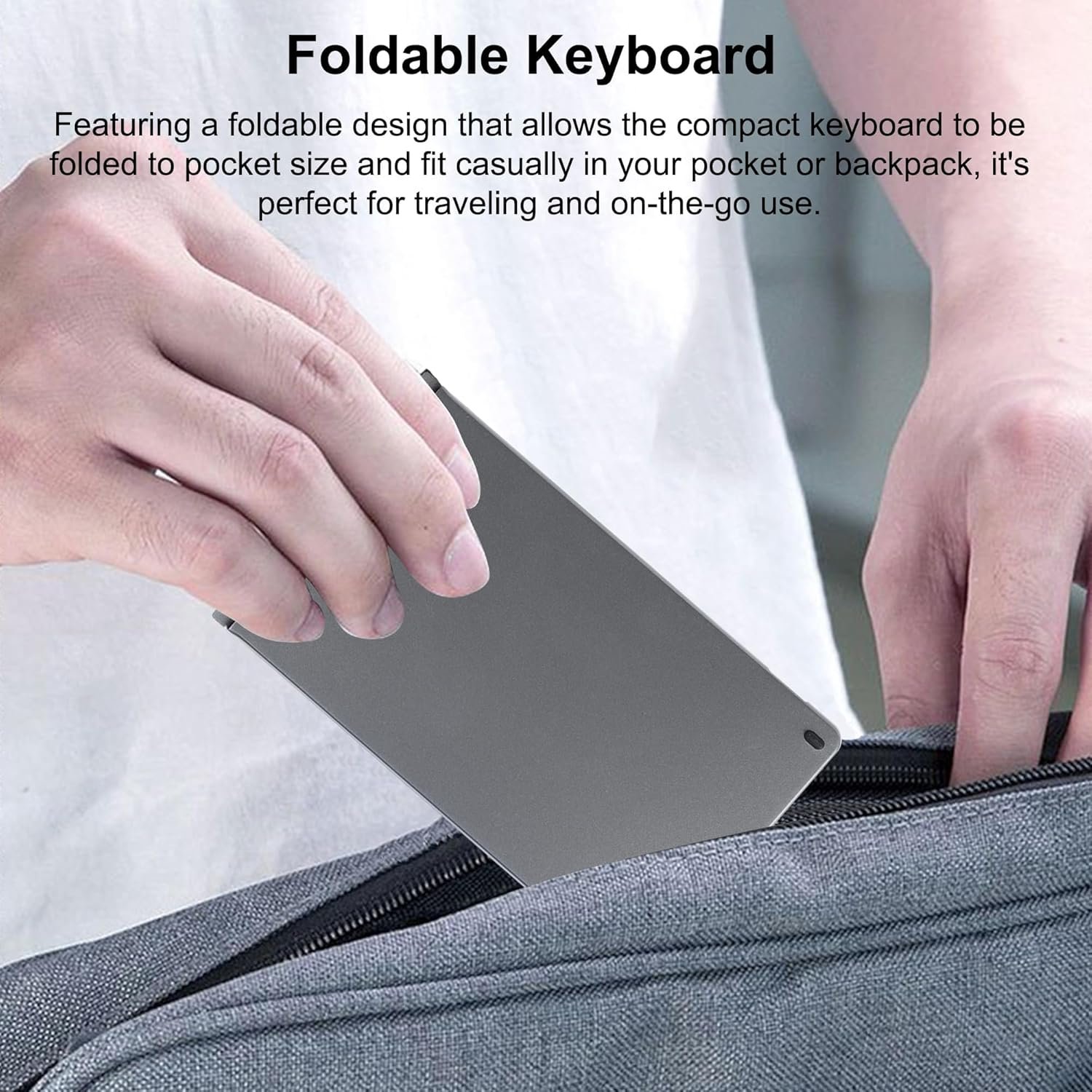Portable & Foldable Design: Our foldable Bluetooth keyboard is designed for ultimate portability. Its foldable feature allows wireless bluetooth keyboard to easily fit into your bag or pocket, making foldable wireless keyboard perfect for on-the-go use.Whether you are in a coffee shop, airport, or office, its compact and foldable design allows you to create a portable workstation anywhere