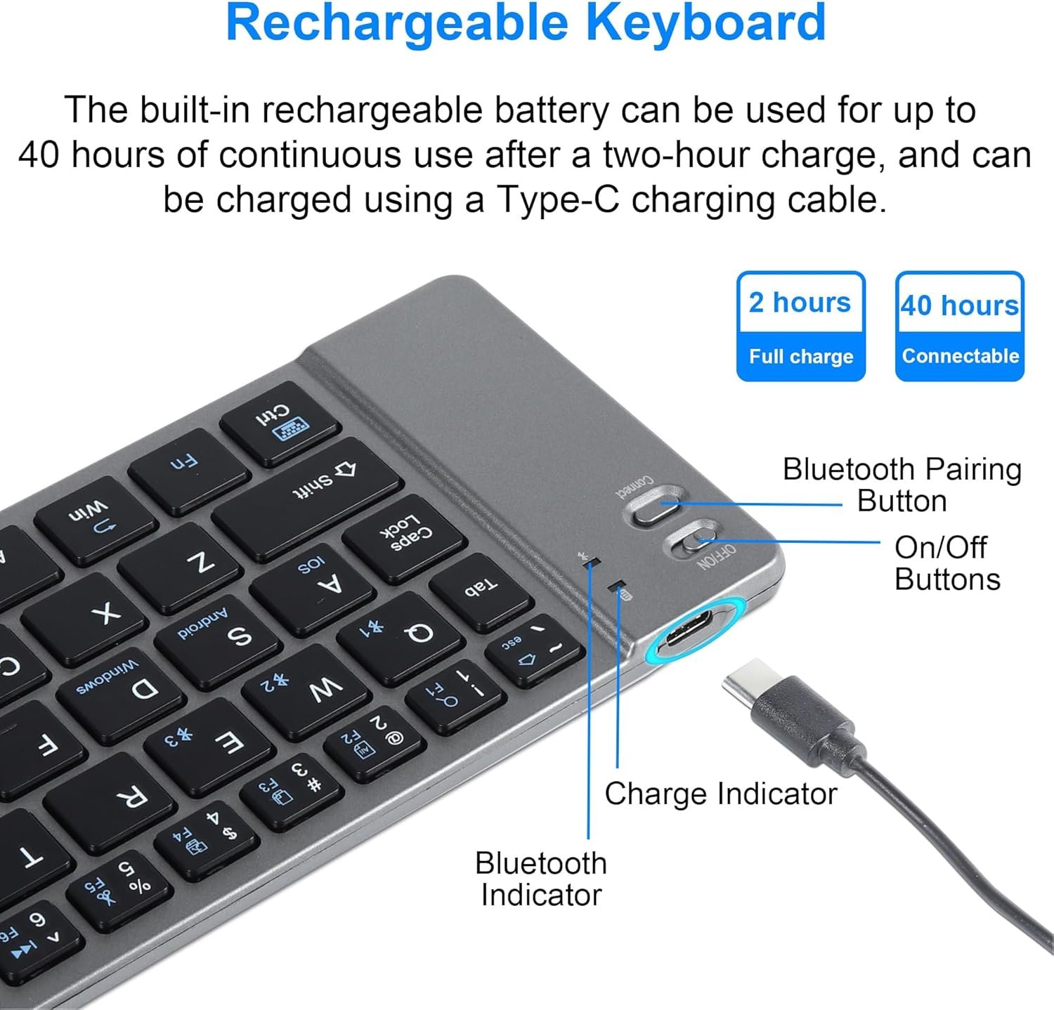 Wireless Connectivity: Enjoy the convenience of wireless connectivity with seamless Bluetooth pairing of small wireless keyboard. Say goodbye to tangled cords and enjoy the freedom of typing from a distance.This wireless capability allows you to type from a distance, making it suitable for presentations or casual use on the couch