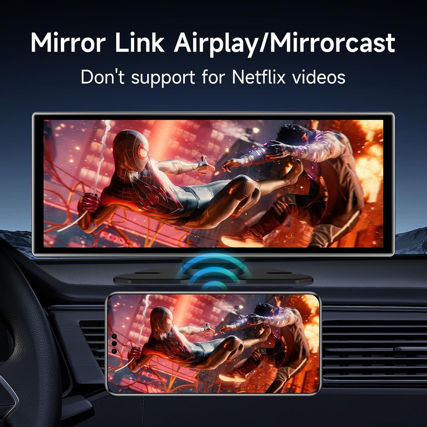 Yes. It supports Airplay and Android Cast, you can only project your phone’s video apps onto this screen through the mirroring function, and any operations is required to be done on your phone when using the mirror link