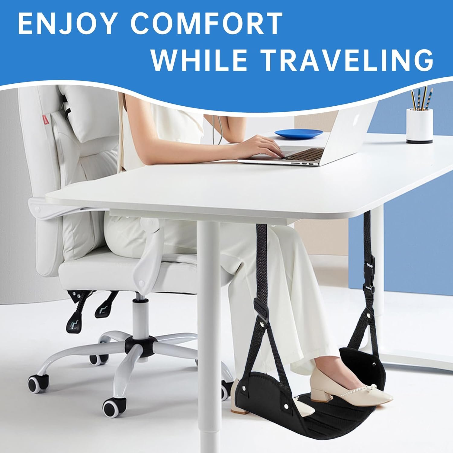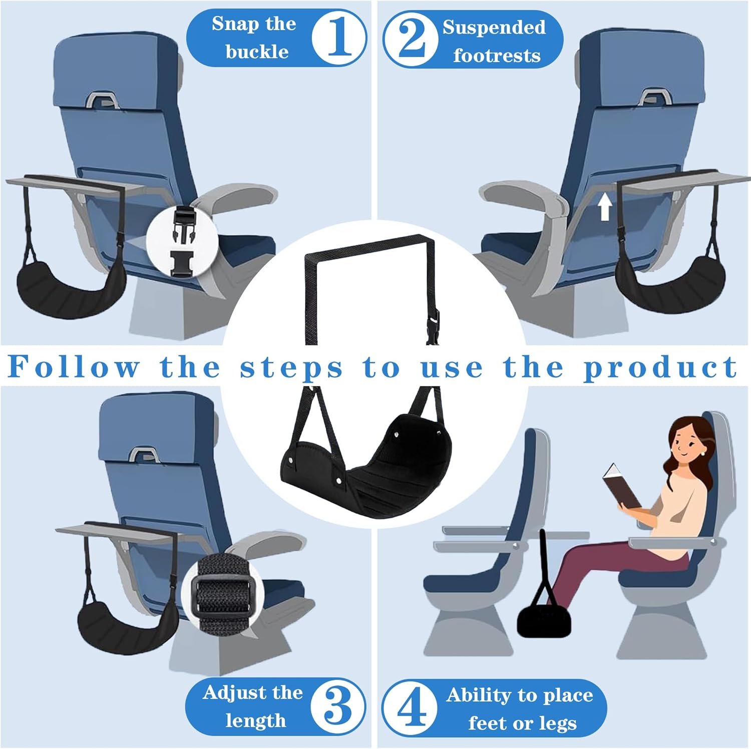 Your Travel Essentials – When traveling, comfort is crucial. We understand the cramped space of an airplane seat and the exhaustion of long-distance travel, so we’ve brought you a solution: travel-sized airplane footrests. This well-designed foot hammock can give your feet and lower back the rest they deserve. It will become your perfect companion, adding ease and comfort to your journey.