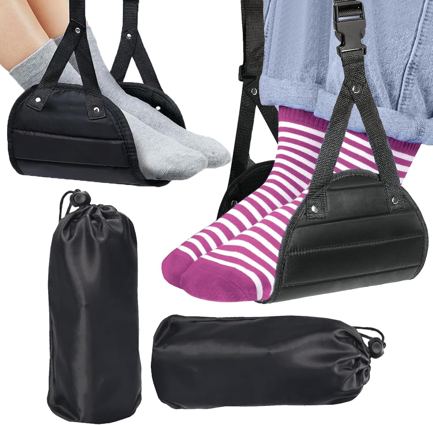 WNJ 2-Pack Airplane Travel Footrest Hammock, Travel Essentials, Relax Your Feet, Comfortable Airplane Footrest/Tripod for Long Trips, Long Flight Must Haves Accessories, Desk Hammock for Feet