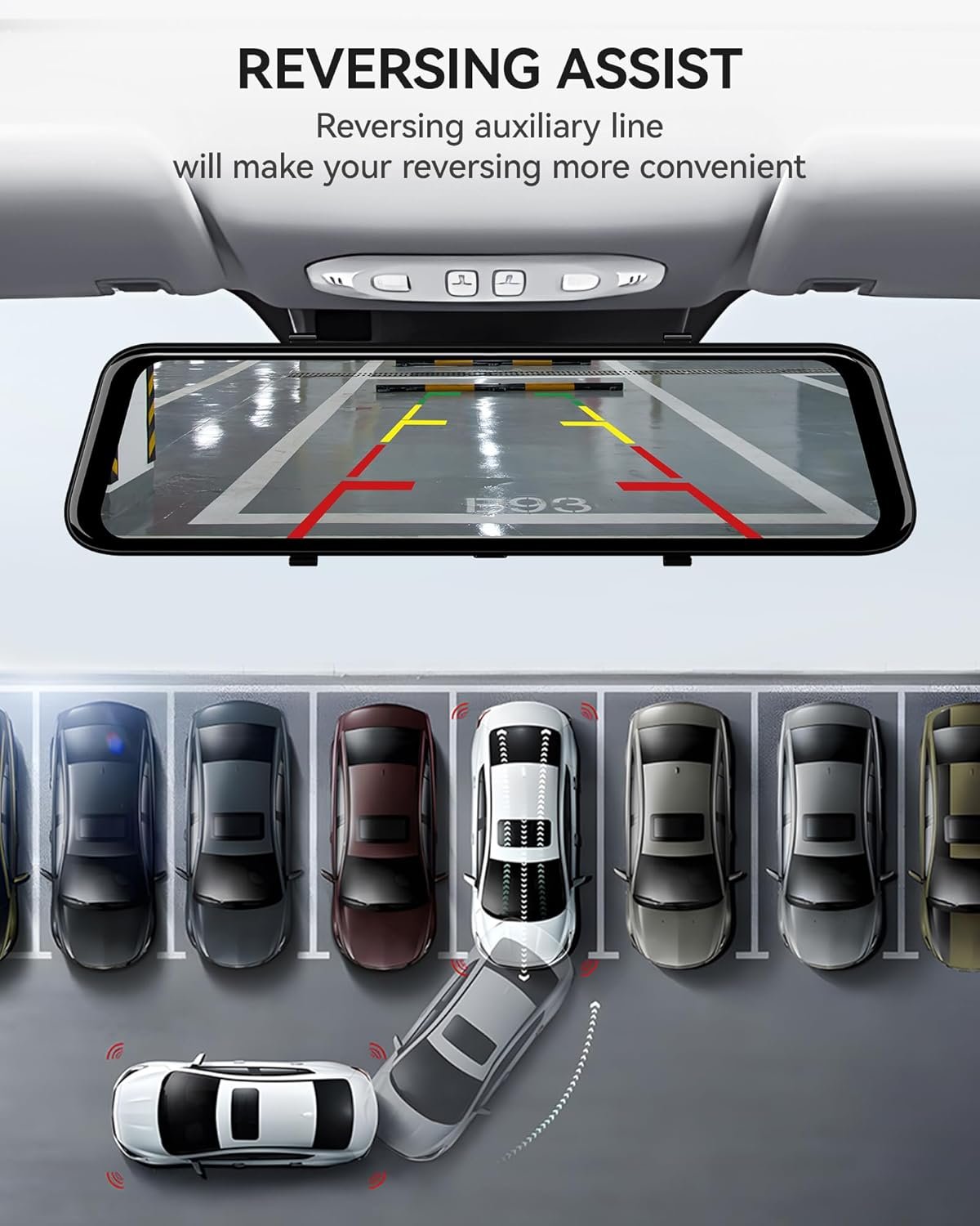 Assist Mode – Upgraded to support 2 modes: Panorama Mode /Full Screen Mode.Rear camera mirror/vertical flip – the rear camera can be rotated up, down, left and right to help perfectly adapt to the installation of various modelsParking Lines – renders parking lines suitable for different heights150° wide-angle – perfect 150° rear view range, eliminating surrounding blind spotsMore viewing angles – the function of sliding up and down, and manual adjustment can be used to obtain a more suitable viewing angle when reversing.