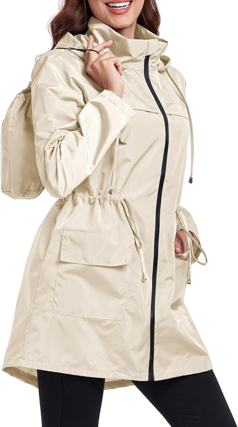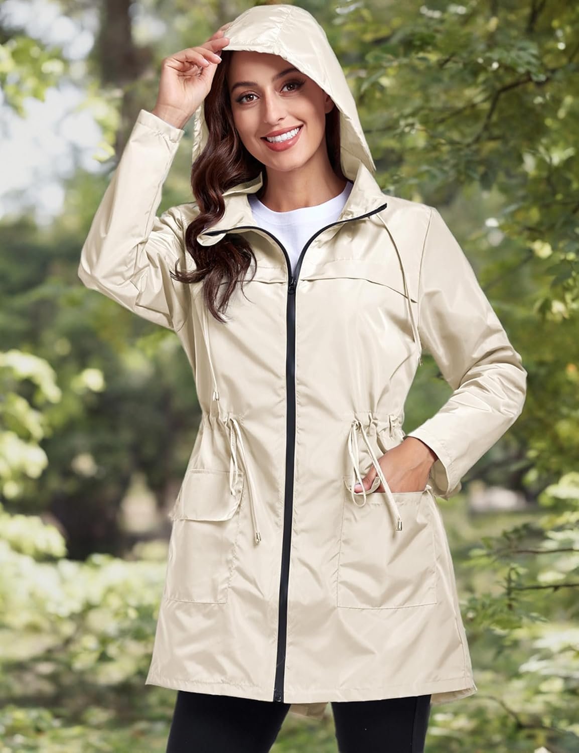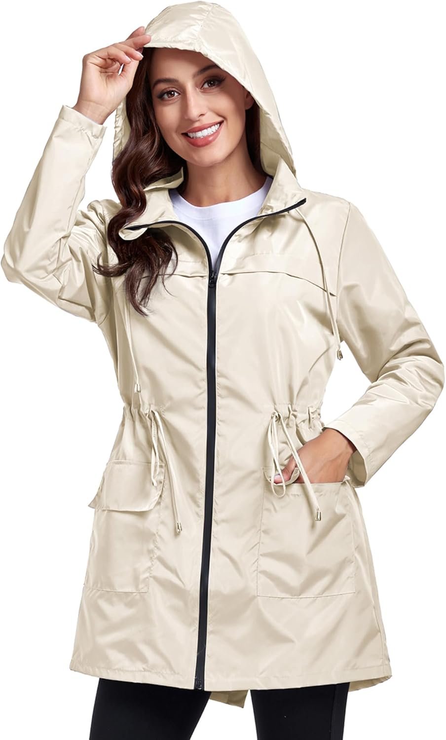 Women Waterproof Raincoat Lightweight Packable Active Outdoor Long Hooded Rain Jacket