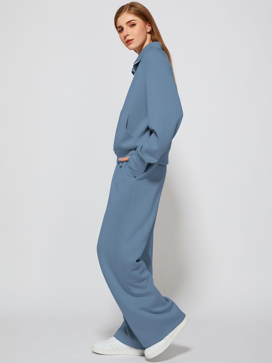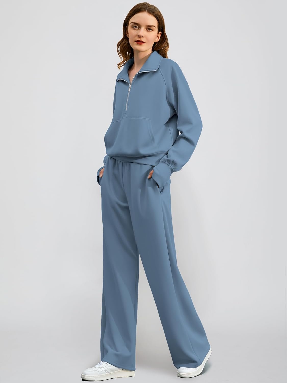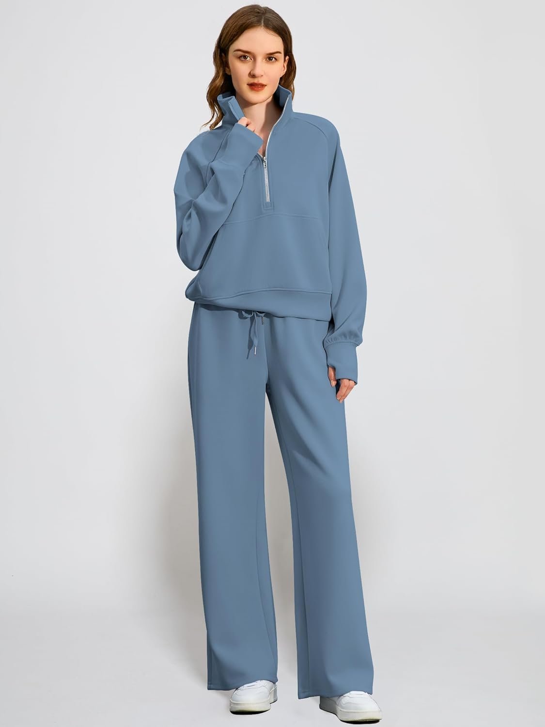 Women 2 Piece Outfits Sweatsuit Set 2023 Fall Half Zip Sweatshirt Wide Leg Sweatpant Lounge SetWomen 2 Piece Outfits Sweatsuit Set 2023 Fall Half Zip Sweatshirt Wide Leg Sweatpant Lounge Set