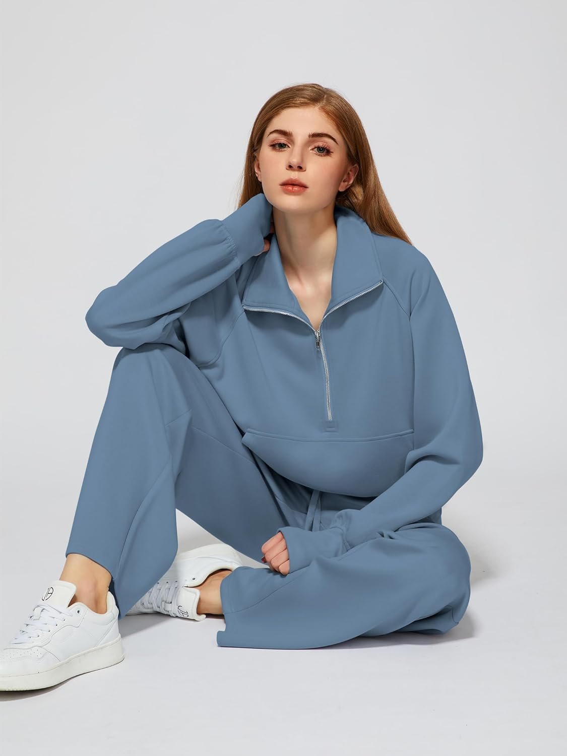 Women 2 Piece Outfits Sweatsuit Set Fall Oversized Half Zip Sweatshirt Wide Leg Sweatpant Lounge SetWomen 2 Piece Outfits Sweatsuit Set Fall Oversized Half Zip Sweatshirt Wide Leg Sweatpant Lounge Set