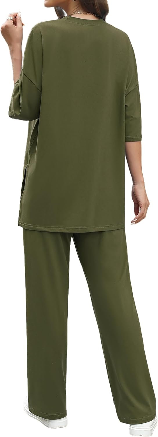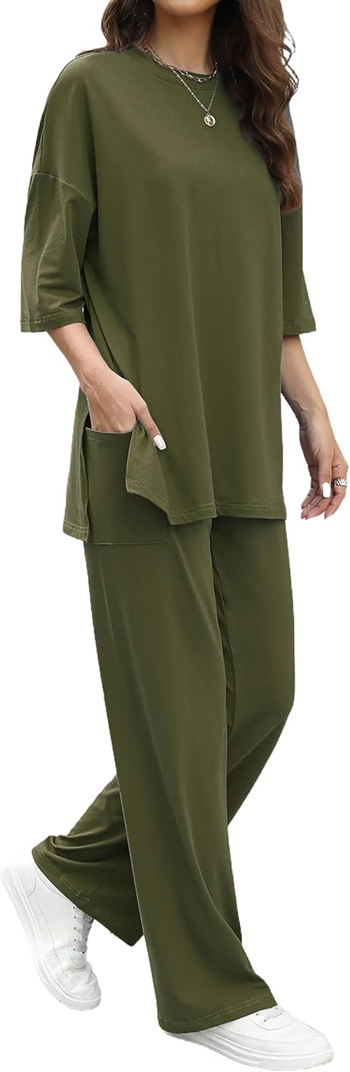Be the first to review “Womens 2 Piece Outfits Short Sleeve Set Wide Leg Pants Casual Trendy Pullover Lounge Set”