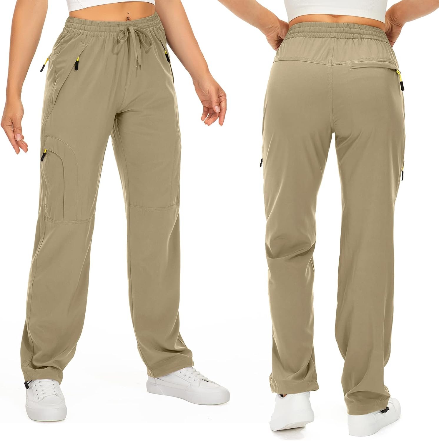 Womens Hiking Pants Quick Dry UPF 50 Travel Golf Safari Lightweight Camping Cargo Pants Zipper Pockets