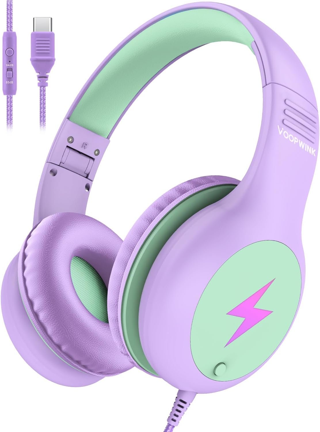 [ Universal USB-C Compatibility ]: VOOPWINK KH3 kids headphones is designed for a wide range of mobile devices ,Chromebooks, iPads, and PCs with a USB-C audio port (Note: Not compatible with USB-C charging ports). No need for an extra adapter—just plug in and play! Perfect kids headphones for school and online learning.