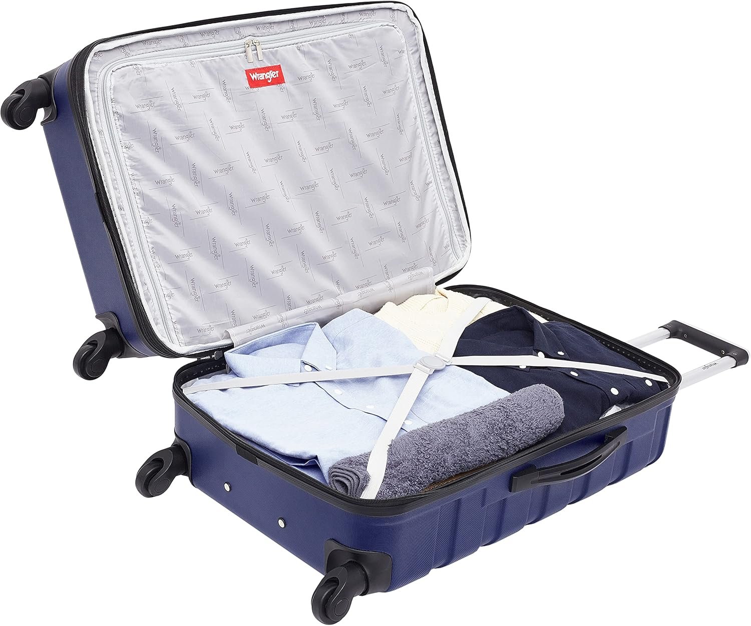 Wrangler 4 Piece Set Includes: 25″ Hardside Expandable Check-In Suitcase, 20″ Hardside Expandable Carry-On Luggage, 15.5″ Packing Cube, 12″ Packing Cube