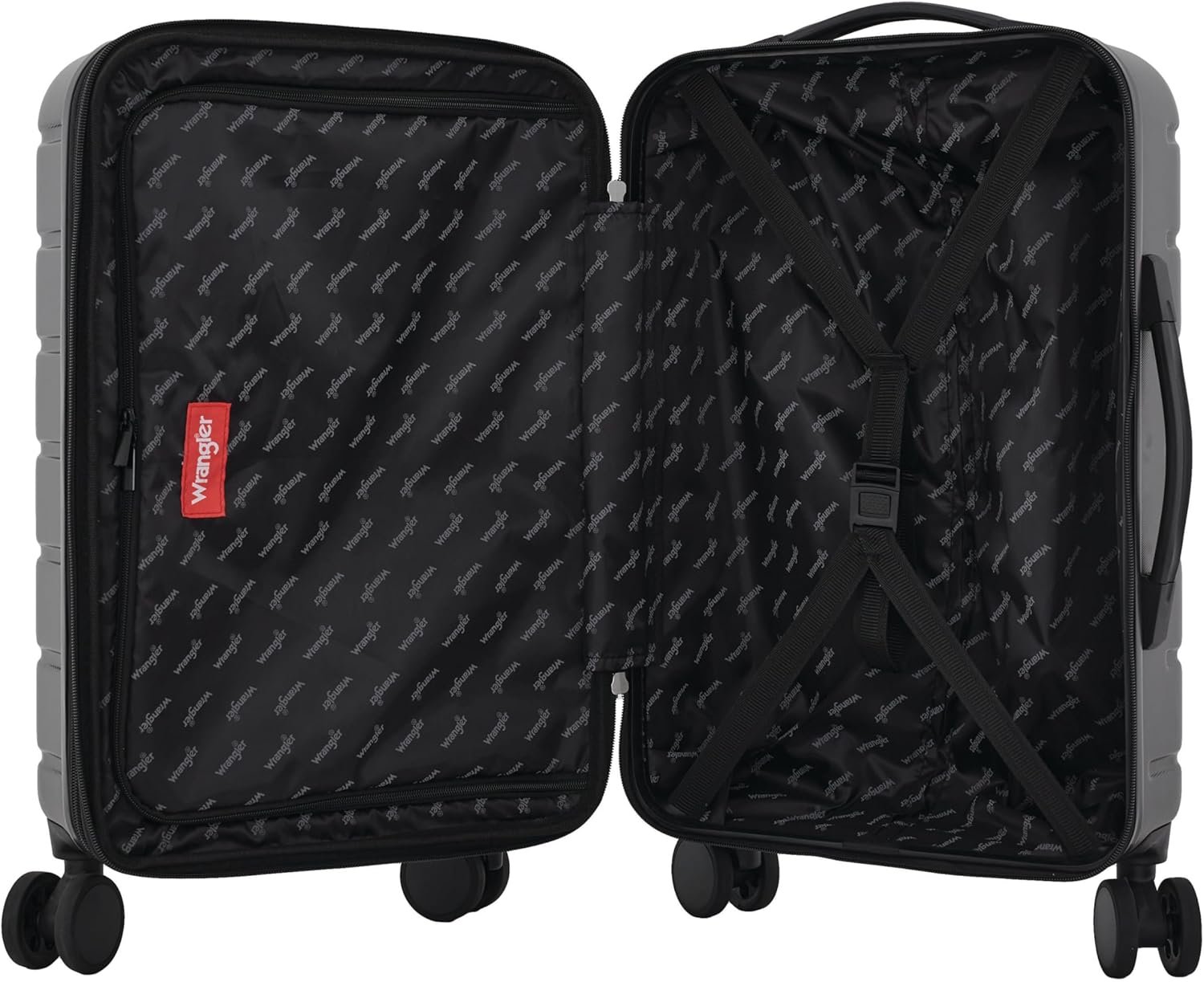 Introducing the Wrangler Trunk Spinner Suitcase Set, a testament to durability and functionality. Embodying the renowned Wrangler brand, this set ensures reliability for all your travels. Its 8 wheel spinner system allows for effortless maneuvering, while the push-button recessed locking handle system adds convenience and security. With an expandable design, you can easily adjust packing capacity to suit your needs. Inside, the fully-lined interior, complete with an accessory pocket, facilitates organized packing, complementing the timeless trunk luggage style. Travel with confidence and style with the Wrangler Trunk Spinner Suitcase Set.