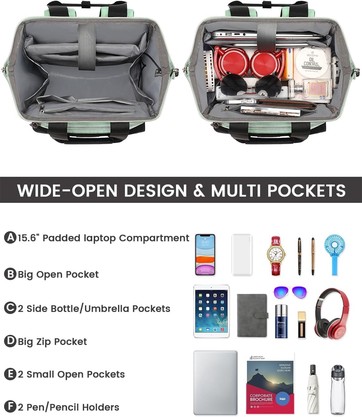 RFID shielding protects your information: The front pocket of the 15.6-inch lady’s laptop backpack uses advanced RFID security technology, a unique metal composite material, designed to shield RFID signals up to 13.56 MHz or higher, and protect your passport Important information such as, credit cards, debit and ATM cards, driving licenses, unauthorized transportation card scanning.