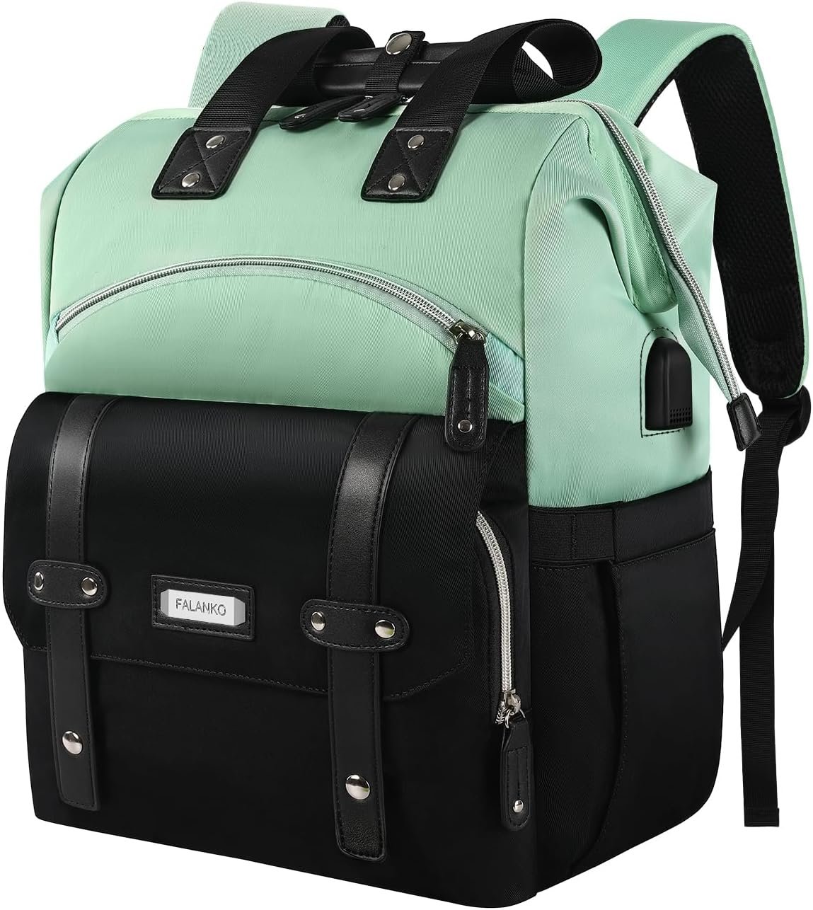 YALIXIAN Laptop Backpack for Women,College Work Teacher backpack for 15.6 Inch laptop with USB Charging Port,Travel Anti Theft Laptops Backpack RFID Anti Theft, Shoulder Purse Bags Green Black