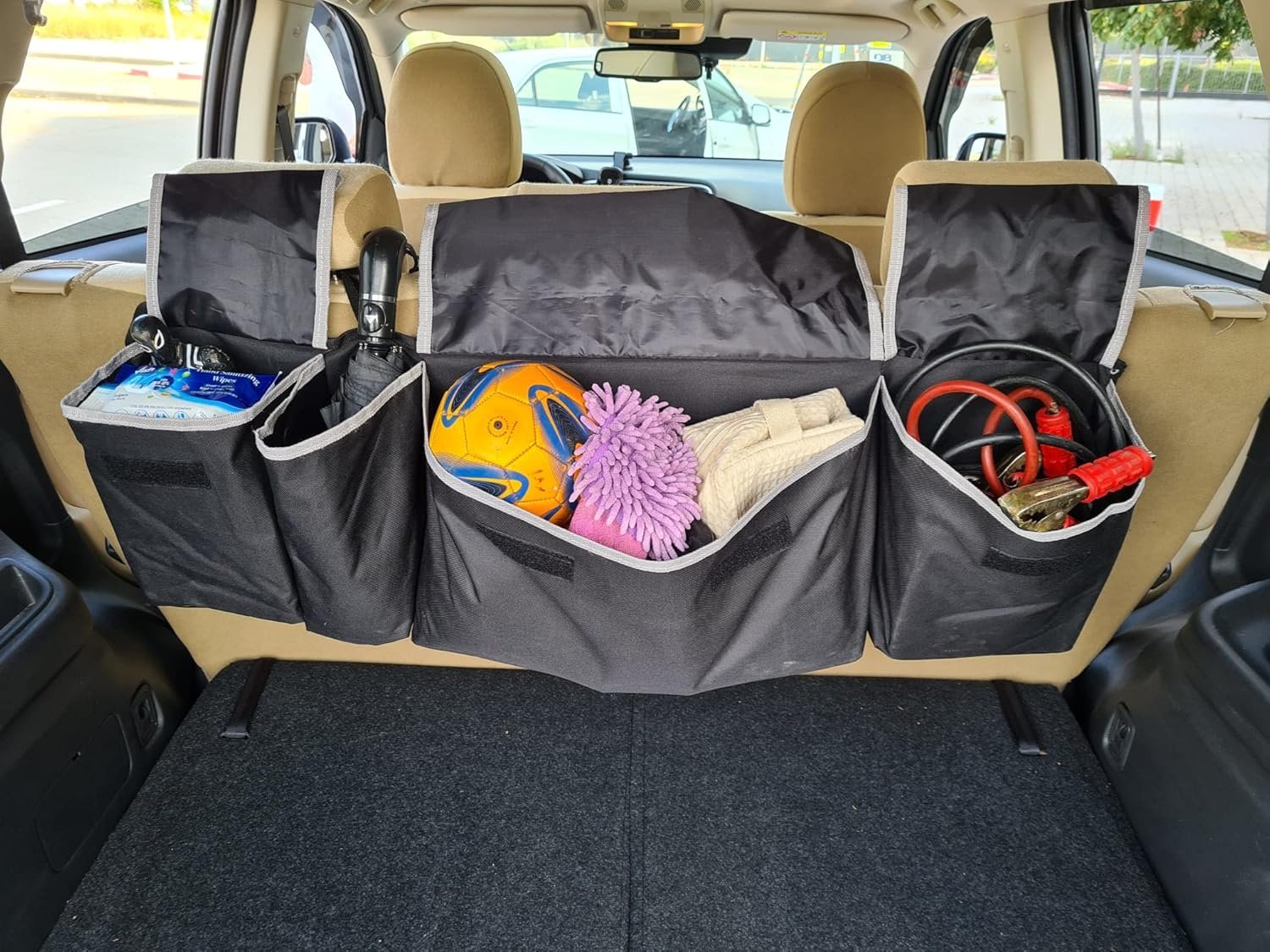 Maximize Trunk Space & Declutter – Say goodbye to messy trunks! Our hanging car trunk organizer helps you reclaim valuable floor space and keep items neatly behind the backseat. Perfect for dads, car enthusiasts, and anyone who loves a well-organized vehicle.