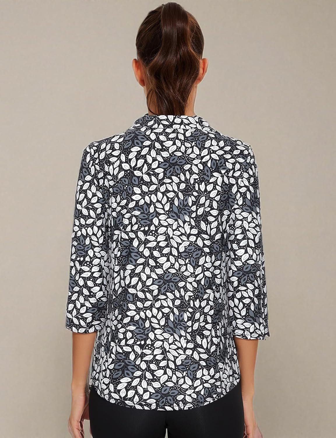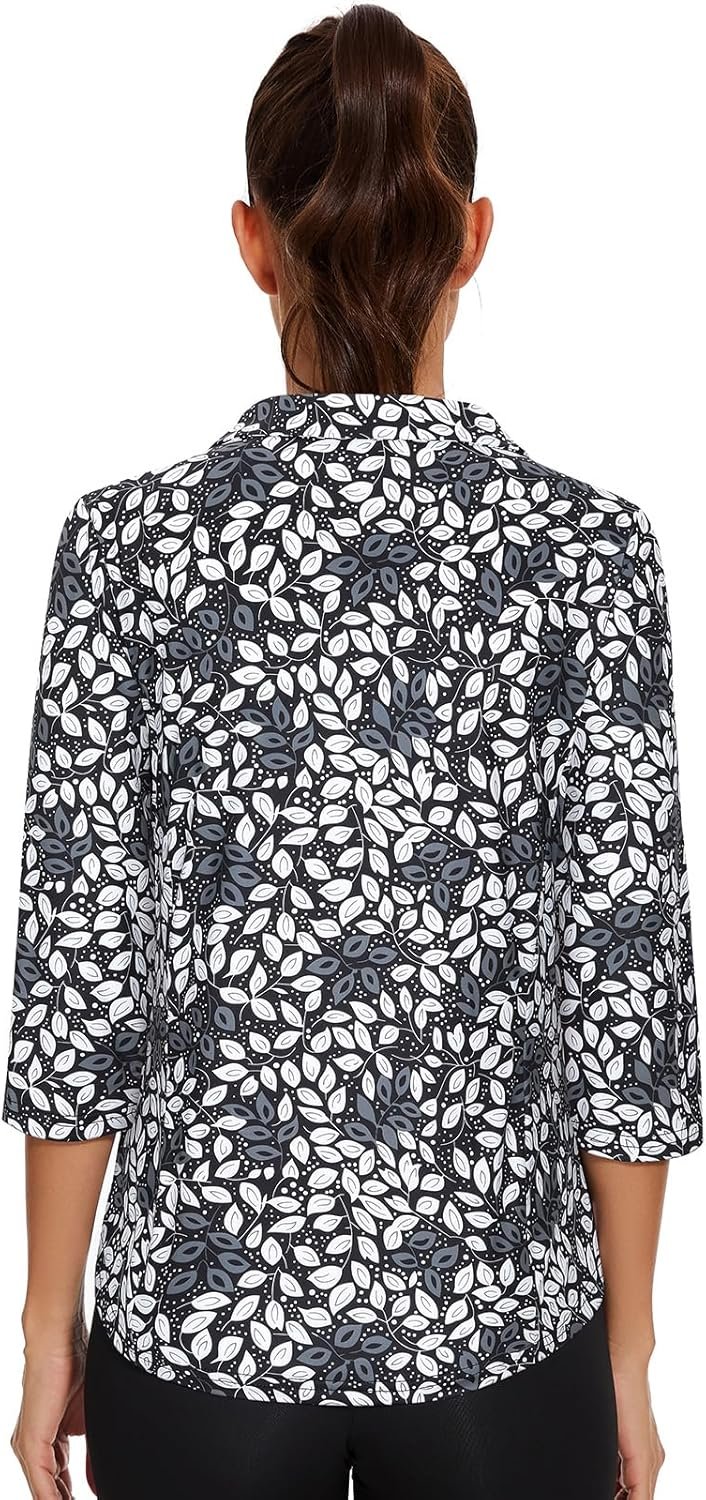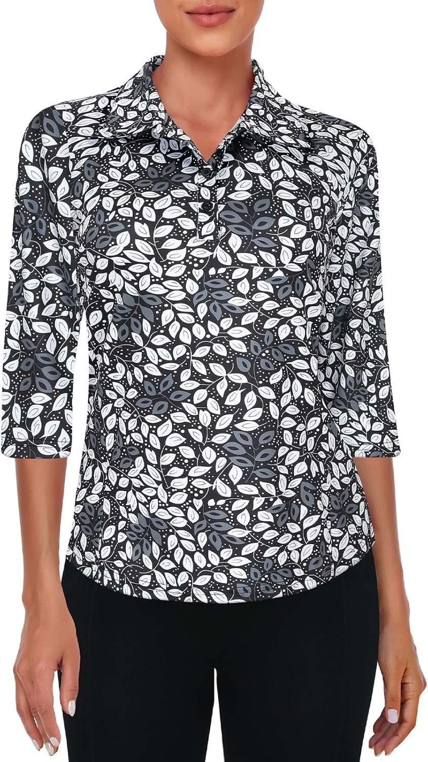 Zamowoty Women’s 3/4 Sleeve Golf Tennis Polo Shirts 4-Button Dry Fit Workout Tops Athletic Shirt UPF50+