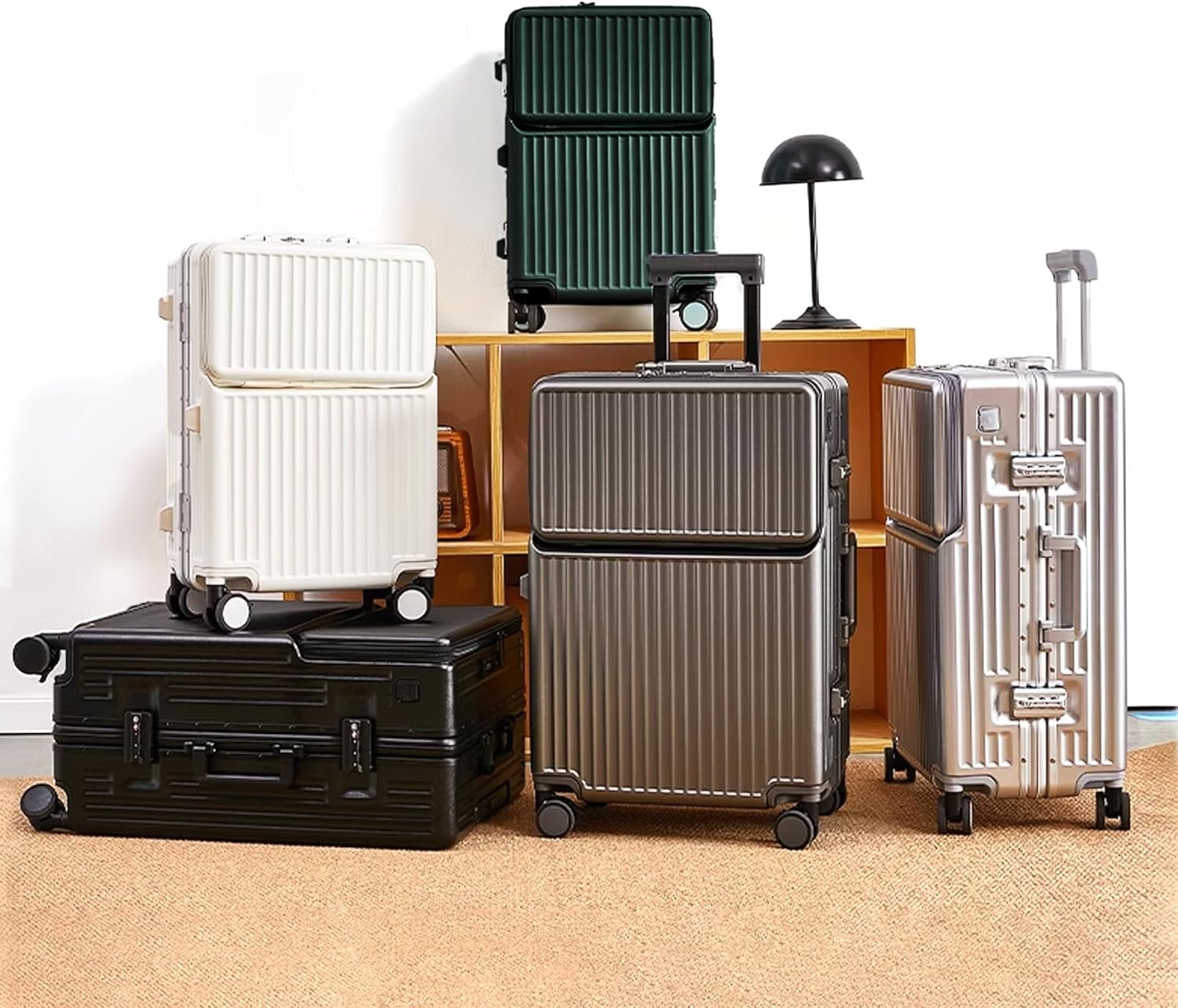 【Stylish and Practical】Travel case with cup holder and zipperless luggage design Designed with a built-in cup holder to keep your drinks safe, a stylish zipperless closure system for easy packing, the aluminum carry-on luggage looks stylish and modern