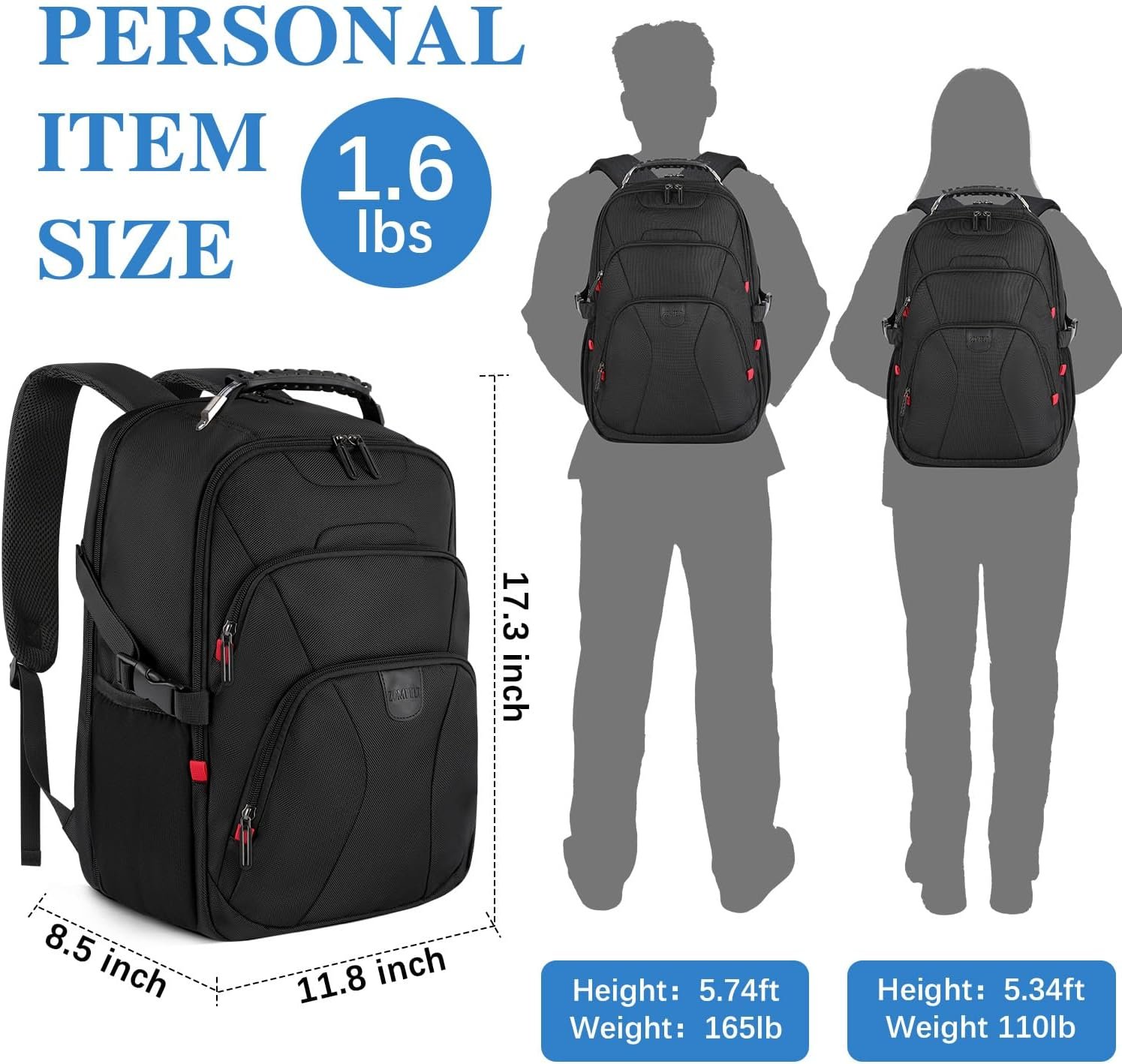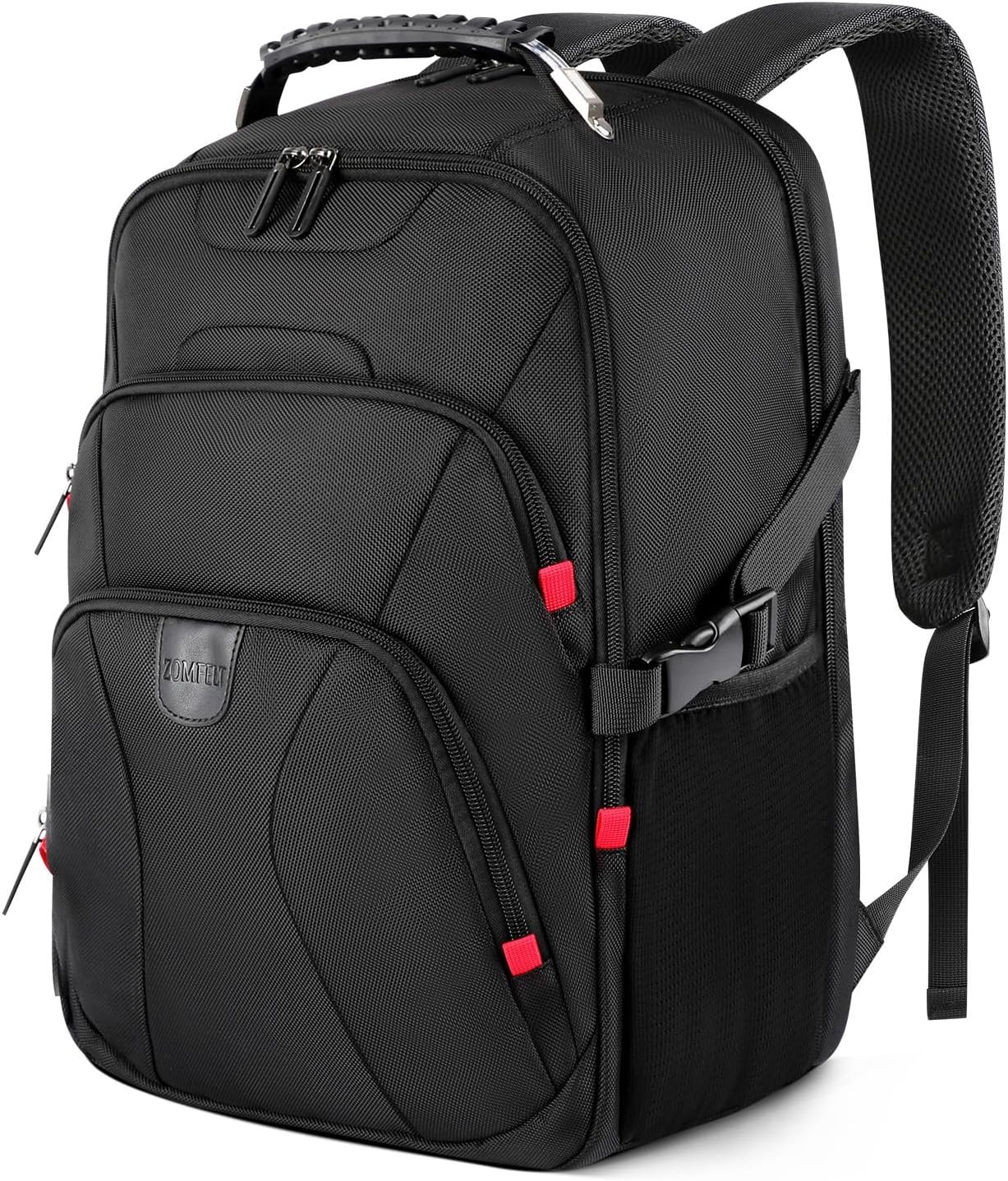 ZOMFELT Travel Backpack, 15.6 inch Laptop Backpack for Men Women, Water Resistant College School Computer Bag, Carry On Bag Airline Approved Business Work Bag, Laptop Bag for Work Trip Gift, Black